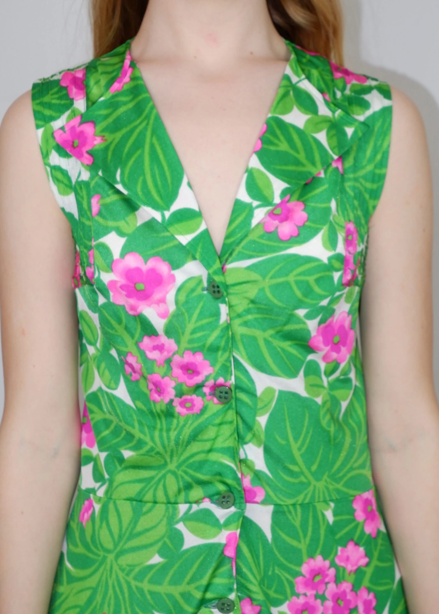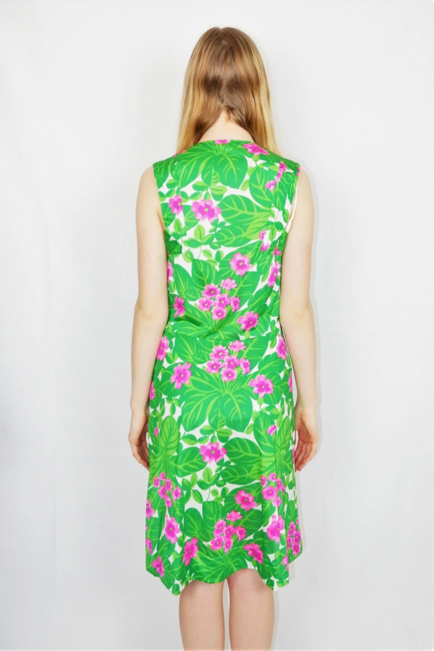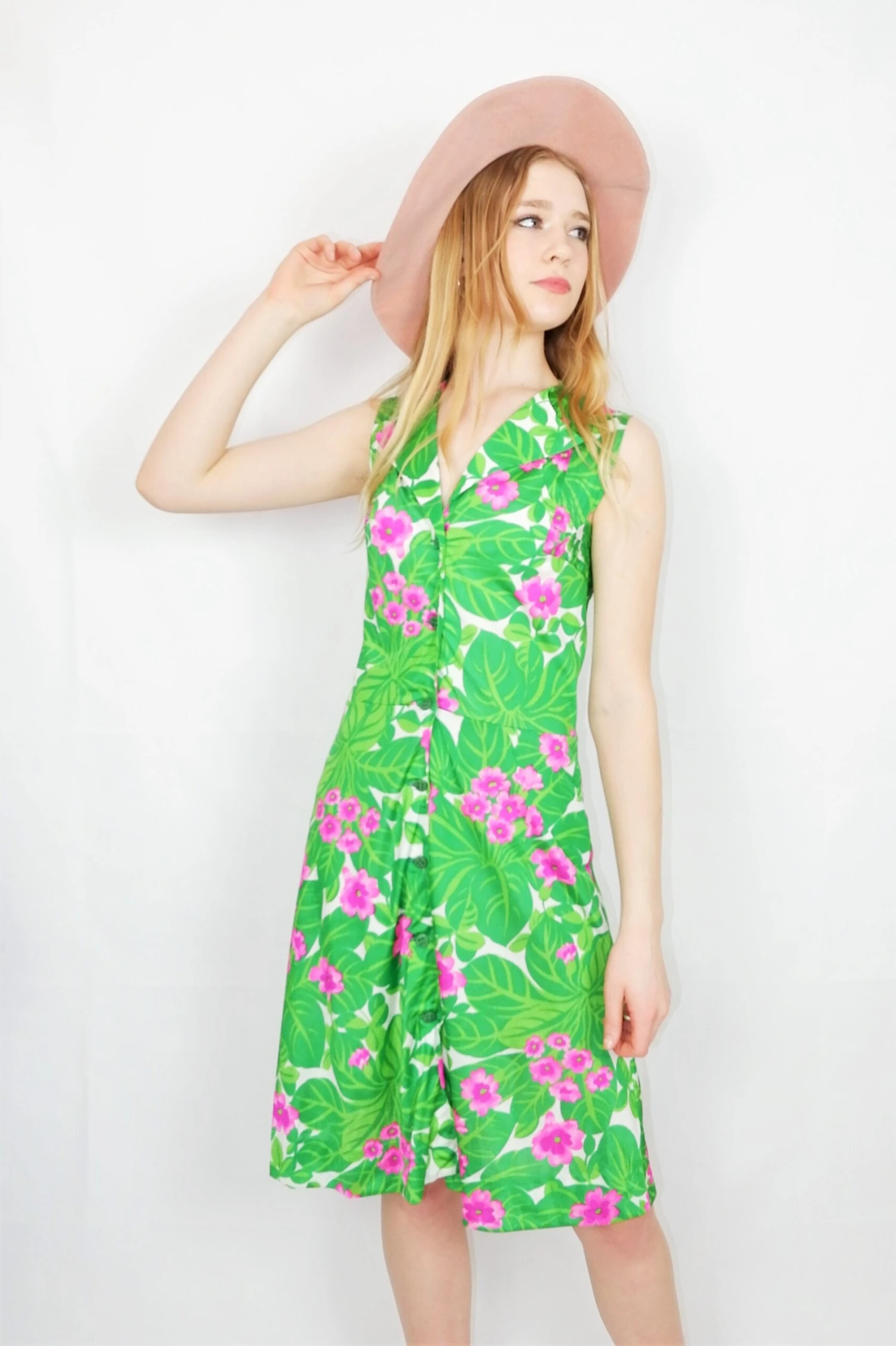 Very gorgeous vintage tropical shirt dress in a lovely green colour with pink flowers. Would look gorgeous in summer with some chunky sunnies and sandals!Â