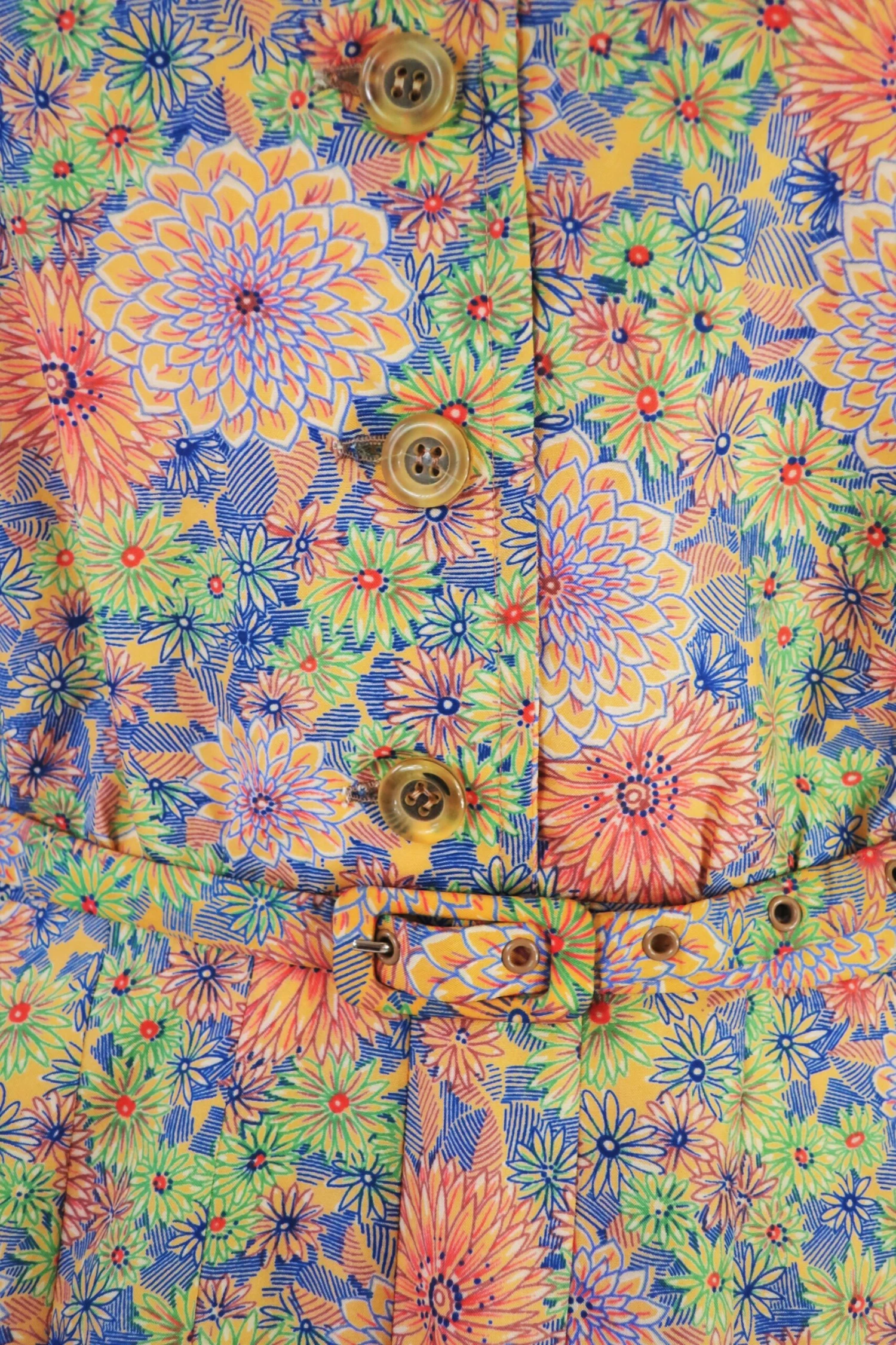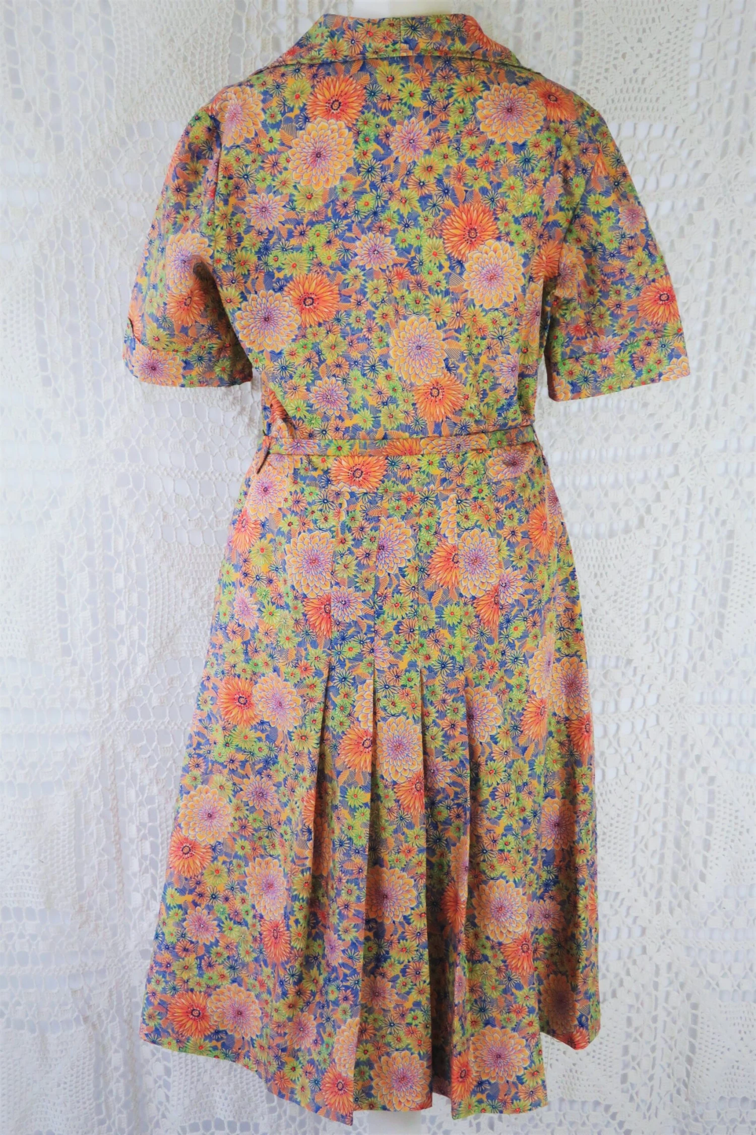 Super cute vintage 70s midi dress with a button up chest, dramatic collar & matching belt!