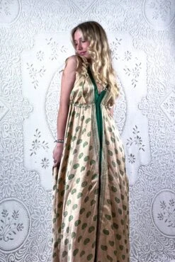 Our Athena Dress – A simple, effortless design with clean lines that gives the wearer an elegant shape and an effortless beauty. A retro halter-neck neckline and a free flowing A-line shape maxi skirt means you can adjust the Athena to you. Wear loose or belted for a more fitted shape. Â
