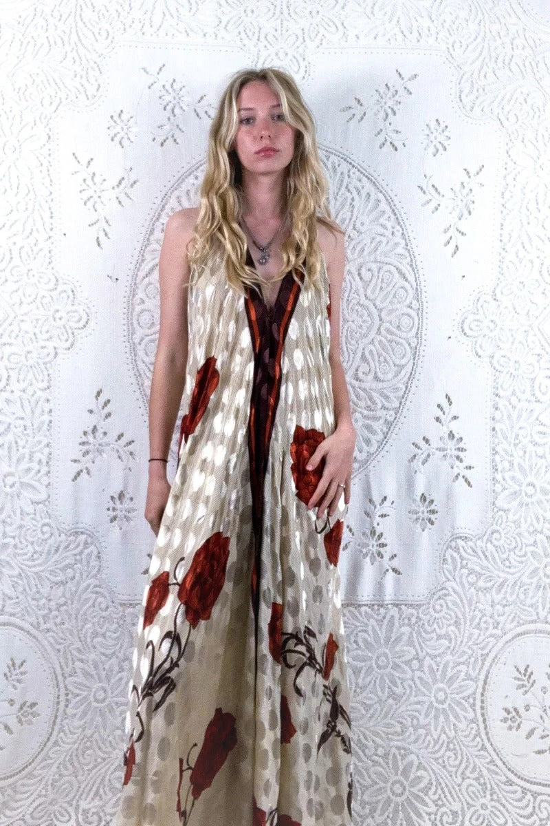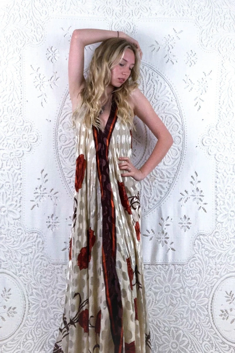 Our Athena Dress – A simple, effortless design with clean lines that gives the wearer an elegant shape and an effortless beauty. A retro halterneck neckline and a free flowing A-line shape maxi skirt means you can adjust the Athena to you. Wear loose or belted for a more fitted shape. Â