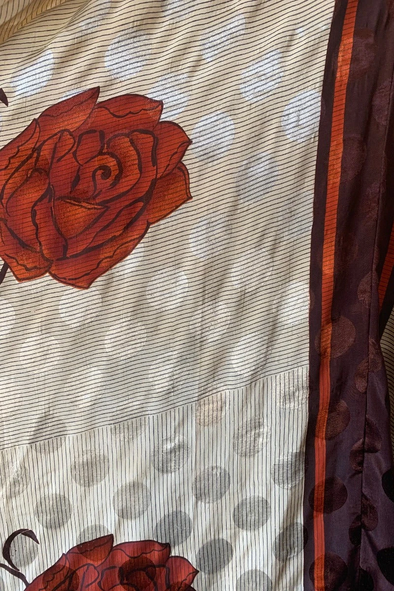 Vintage Indian Sari Fabric – Unknown Exact Content – Made from vintage recycled Indian fabrics. Feels like a silky blend – Very lightweight and quite sheer.Â