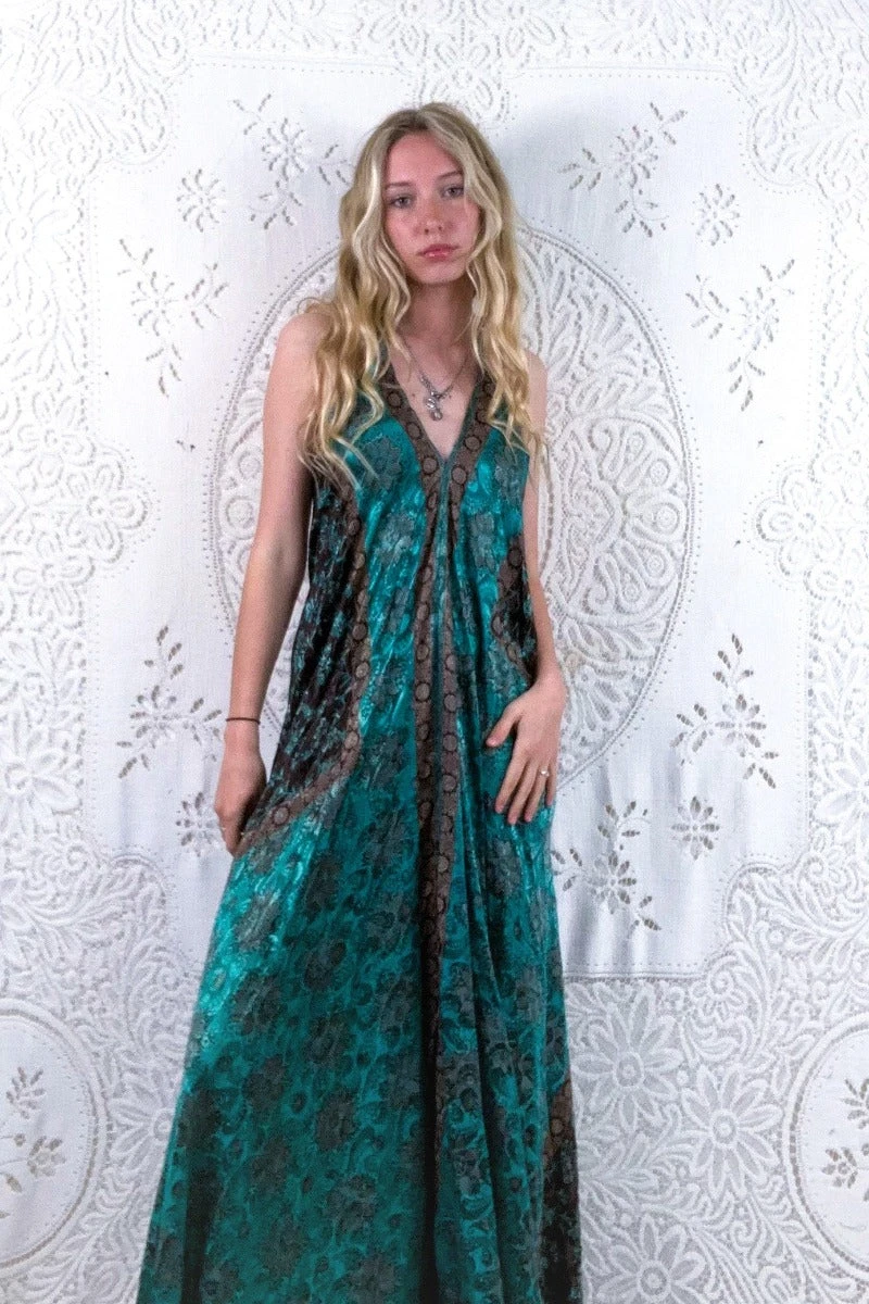 Our Athena Dress – A simple, effortless design with clean lines that gives the wearer an elegant shape and an effortless beauty. A retro halterneck neckline and a free flowing A-line shape maxi skirt means you can adjust the Athena to you. Wear loose or belted for a more fitted shape. Â