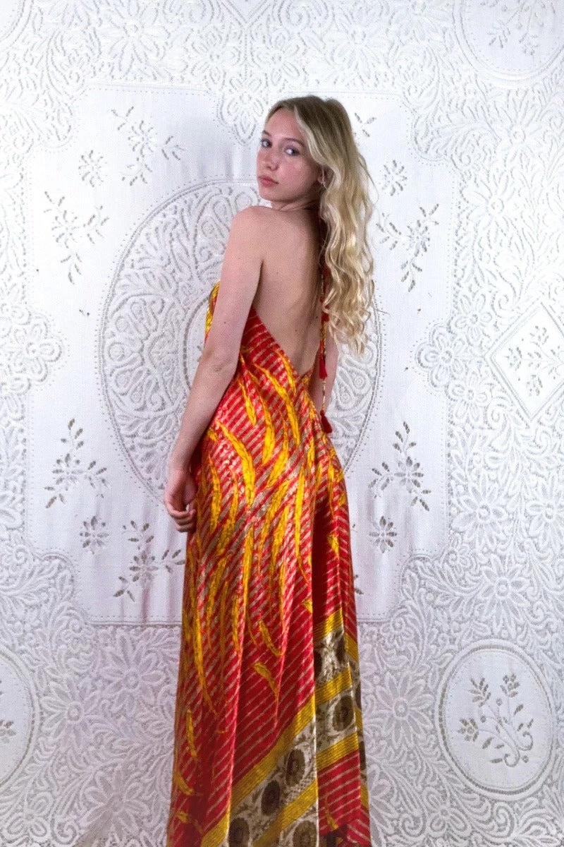 Our Athena Dress – A simple, effortless design with clean lines that gives the wearer an elegant shape and an effortless beauty. A retro halter-neck neckline and a free flowing A-line shape maxi skirt means you can adjust the Athena to you. Wear loose or belted for a more fitted shape. Â