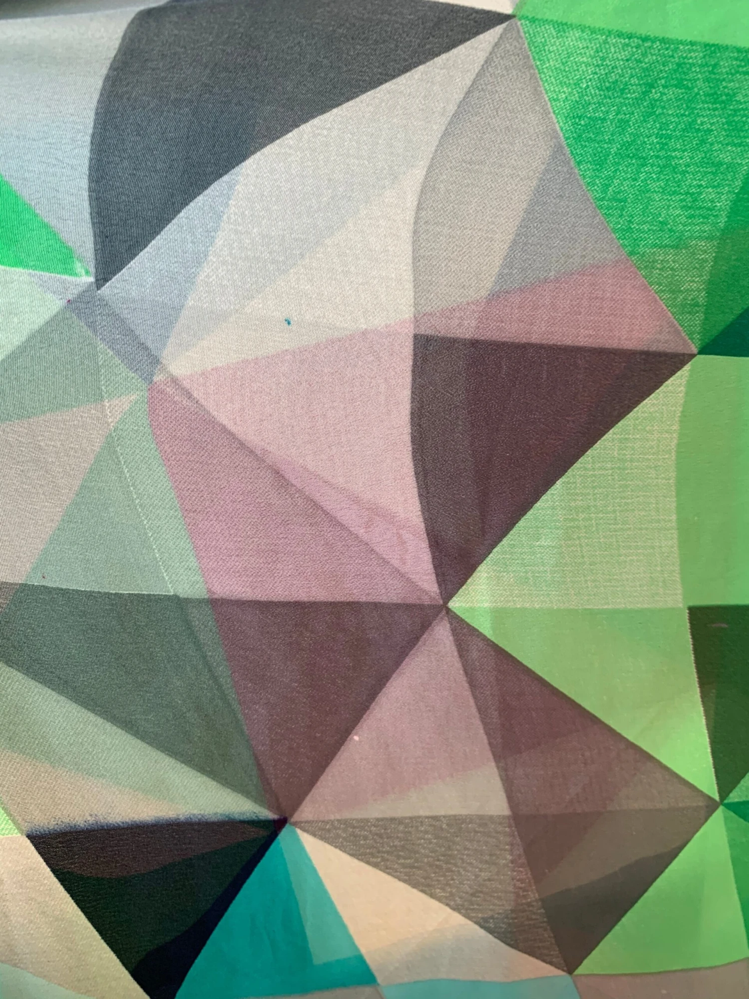 Vintage Indian sari silk Mix – Unknown exact content blend – very lightweight and slightly sheer. Feels like a silky mix fabric.Â