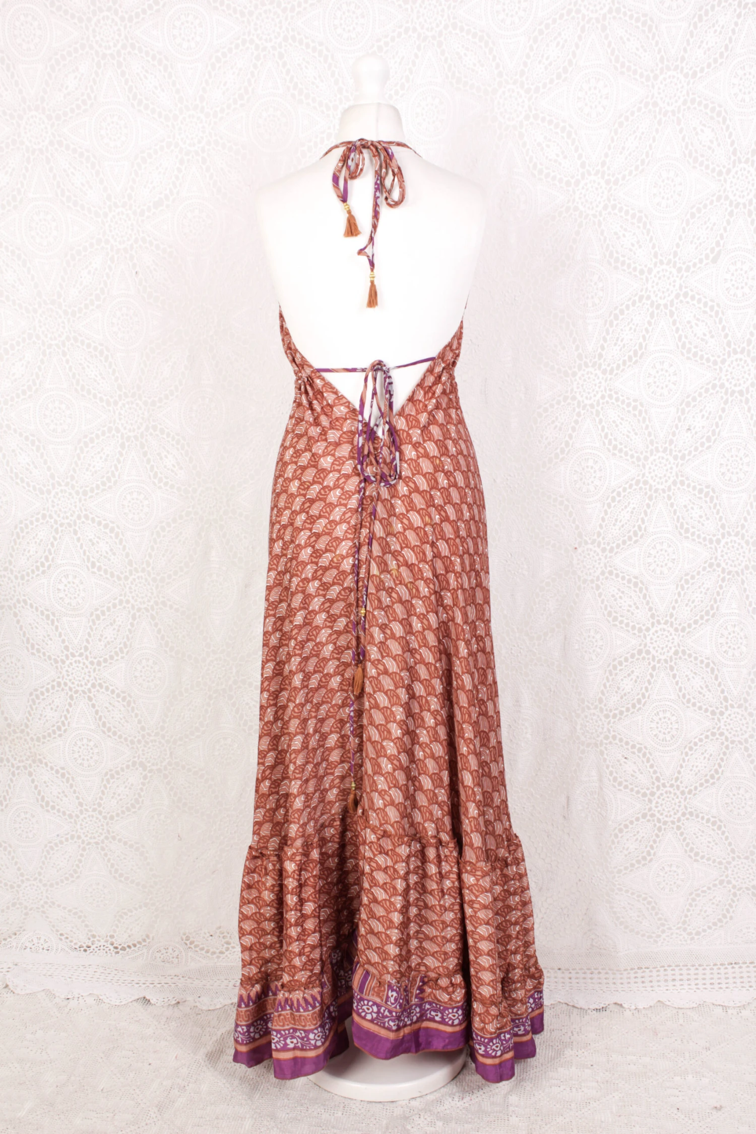 Stunning bohemian halter-neck maxi dress with a tiered frill skirt.