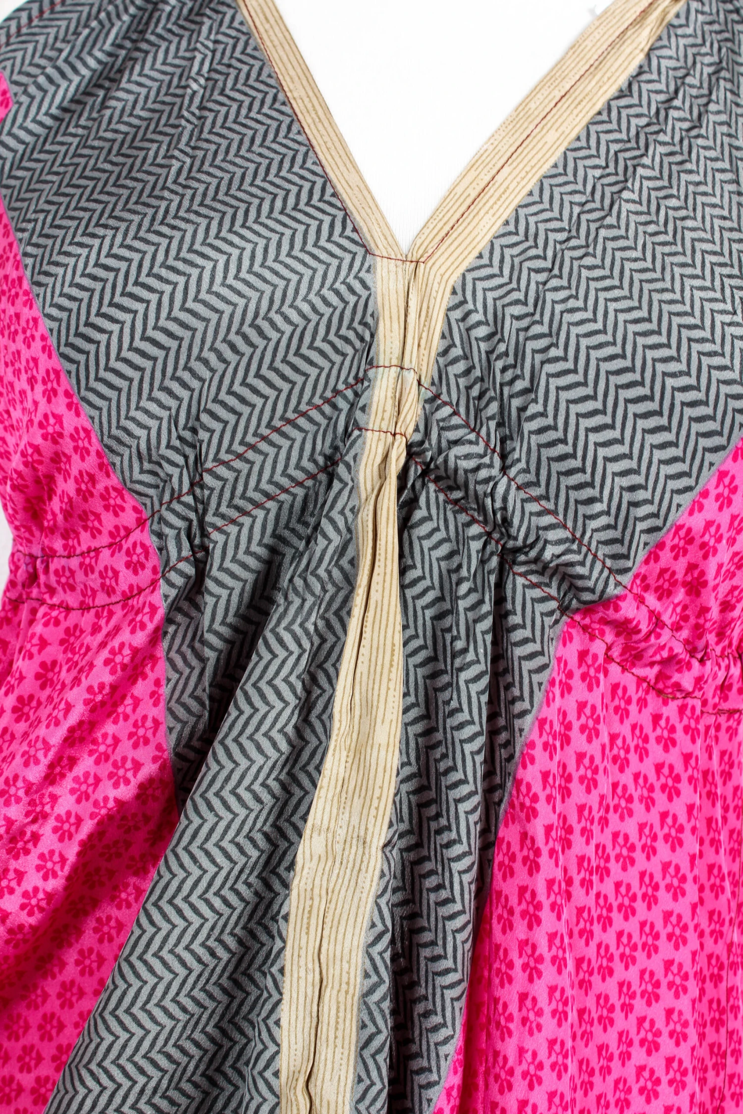 Fabric: Vintage Indian Sari Fabric – Unknown Exact Content – feels like a soft and silky viscose blend