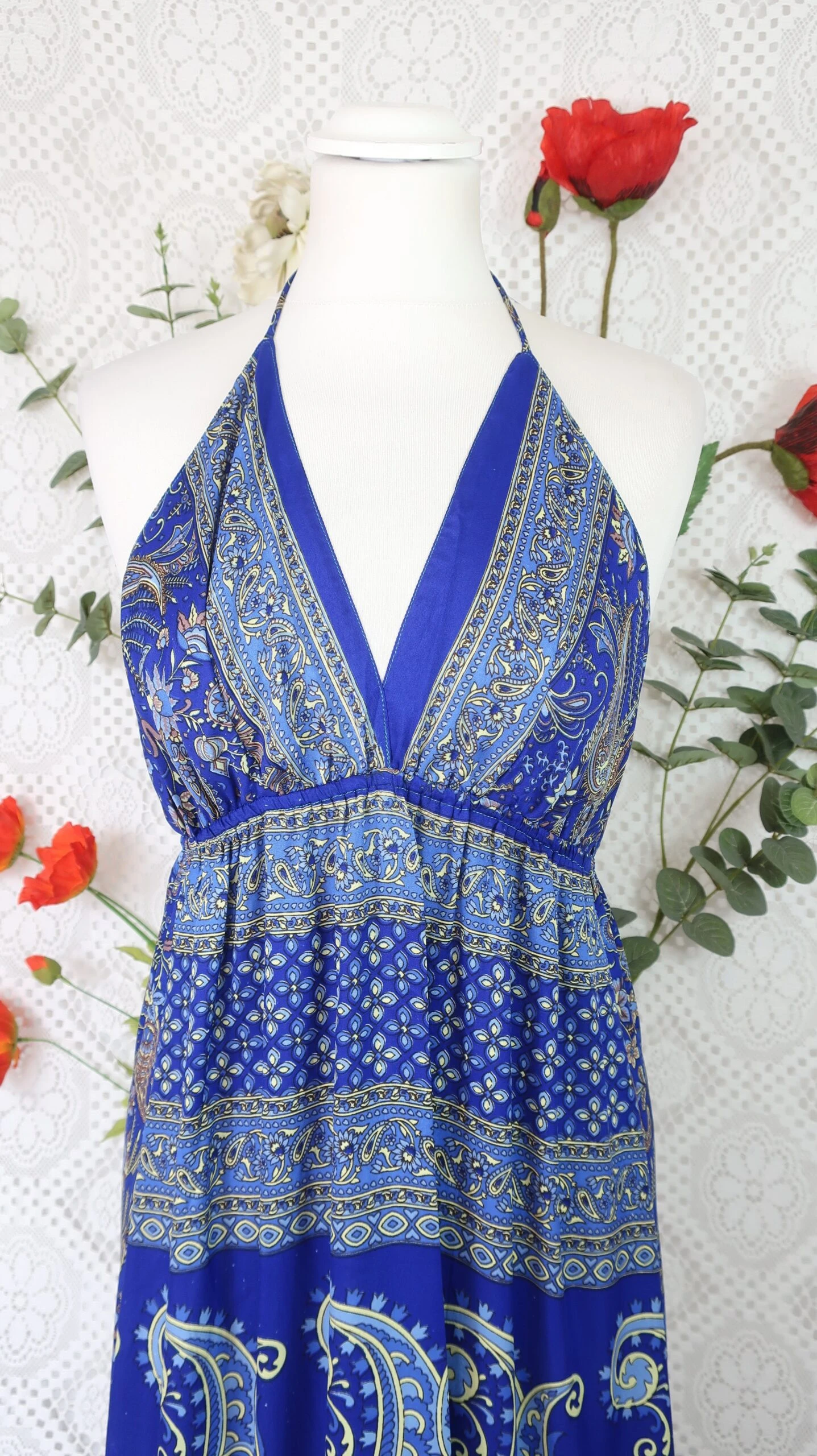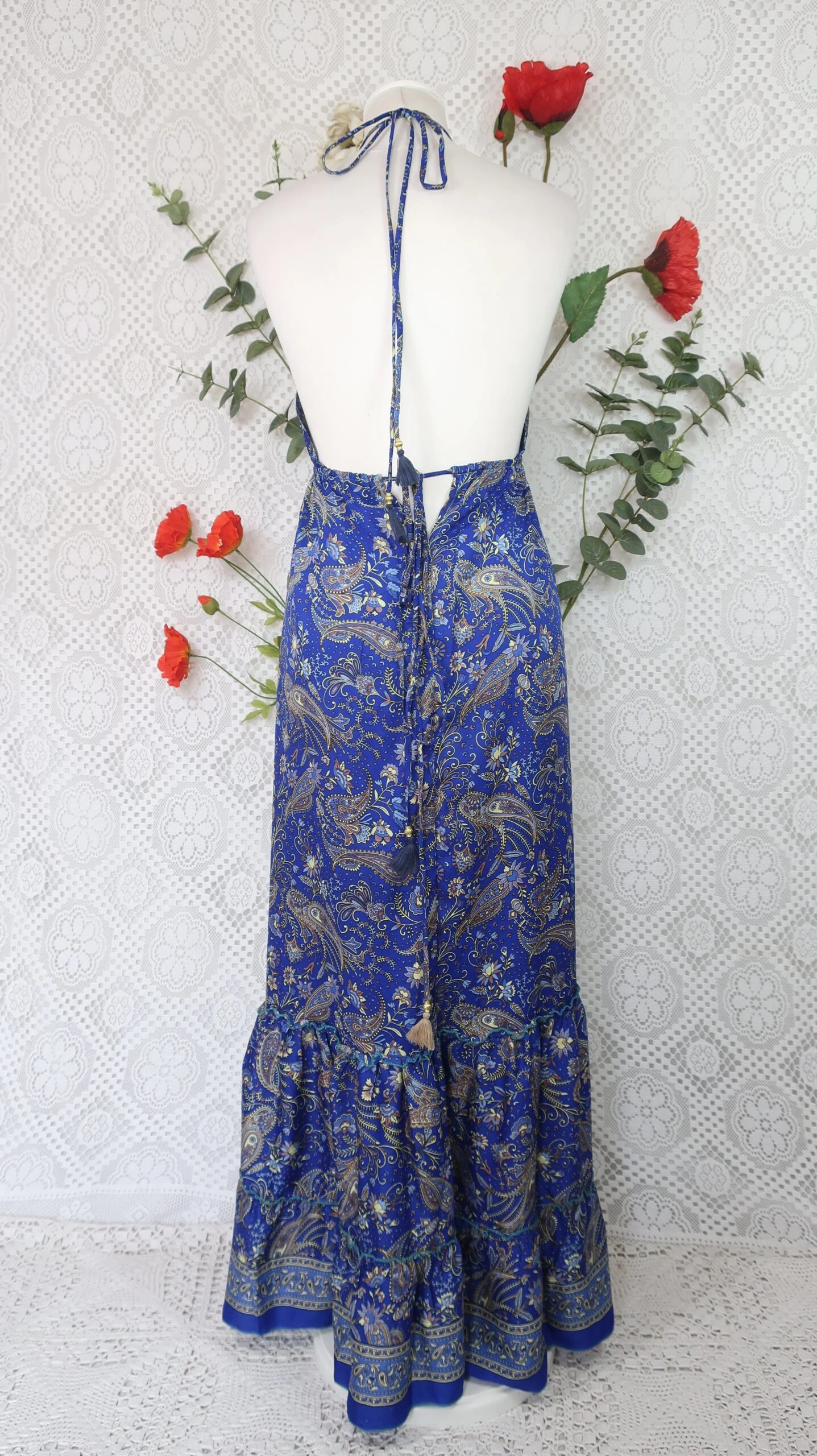Stunning bohemian halter-neck maxi dress with a tiered frill skirt.