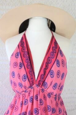 Made from vintage recycled Indian fabrics. Super soft silky material with a gorgeous colour and print. It has adjustable ribbon ties at the neck and waist to fit you perfectly.