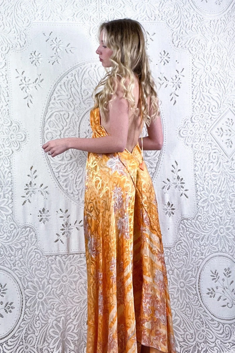 Our Eden dress – this elegant style is a dream! With it’s long floaty skirt and a drawstring waist that can be adjusted and cinched in to fit you! Also featuring a classic halter-neck design with eyelet ring details.