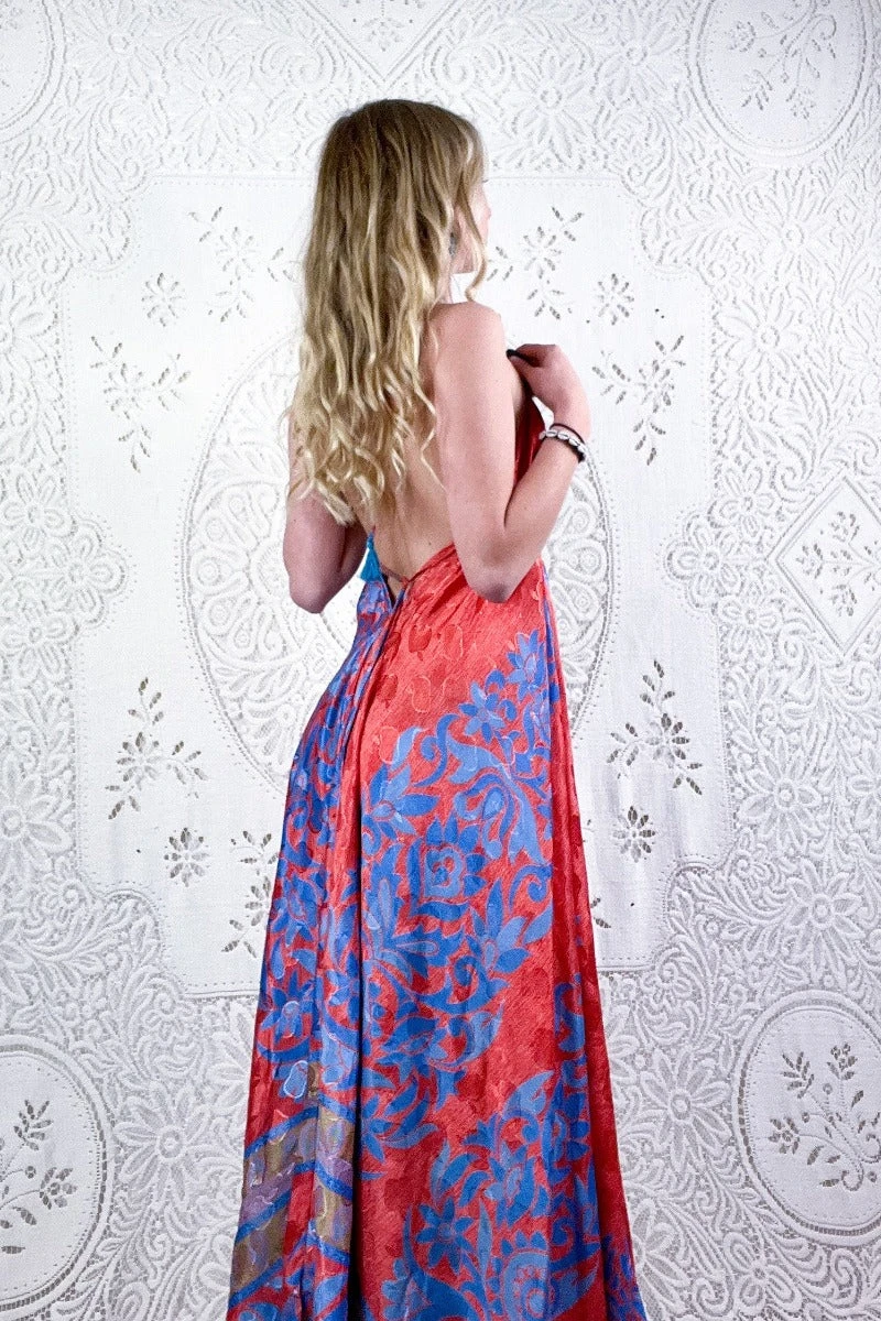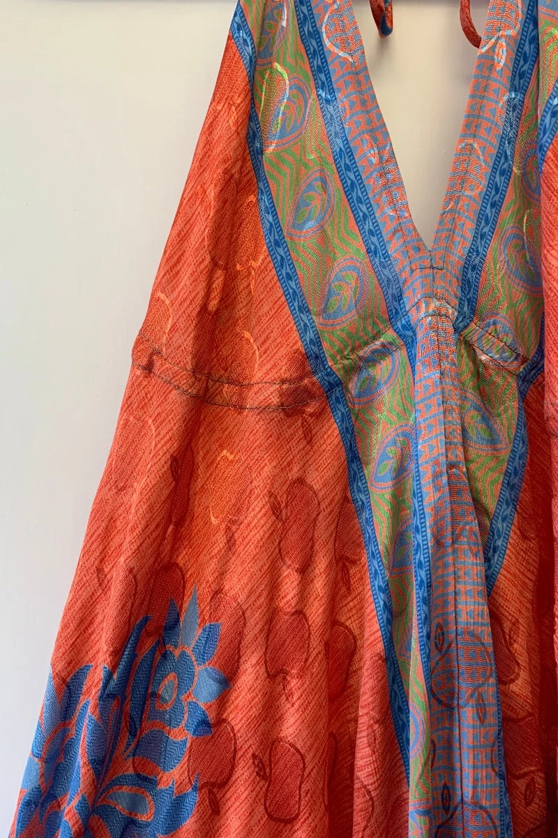 Fabric: Vintage Indian Sari Fabric – Unknown Exact Content – Made from vintage recycled Indian fabrics. Feels like a silky viscose blend – fabric is lightweight and therefore very sheer. Last photo is a better representation of the real life colourway.