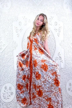 Fabric: Vintage Indian Sari Fabric – Unknown Exact Content – Made from vintage recycled Indian fabrics. Feels like a silky viscose blend – fabric is lightweight and therefore quite sheer.