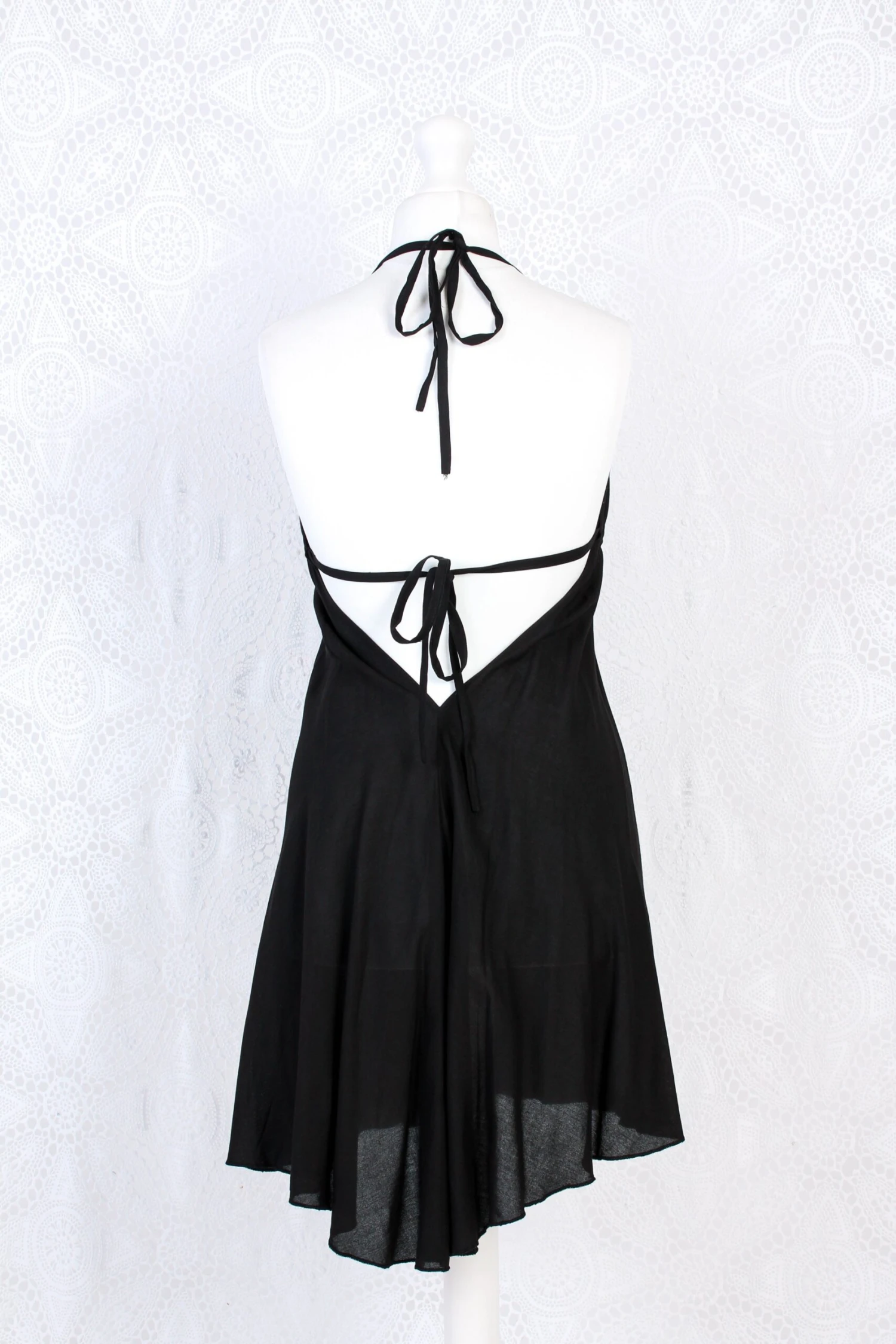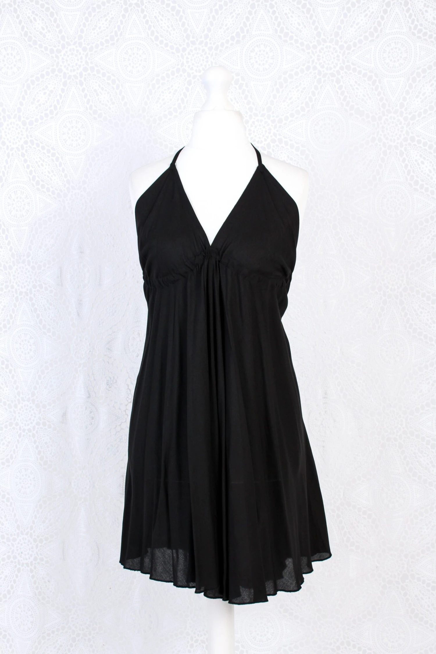 Stunning short halter-neck dress, made from lovely soft Indian Rayon.