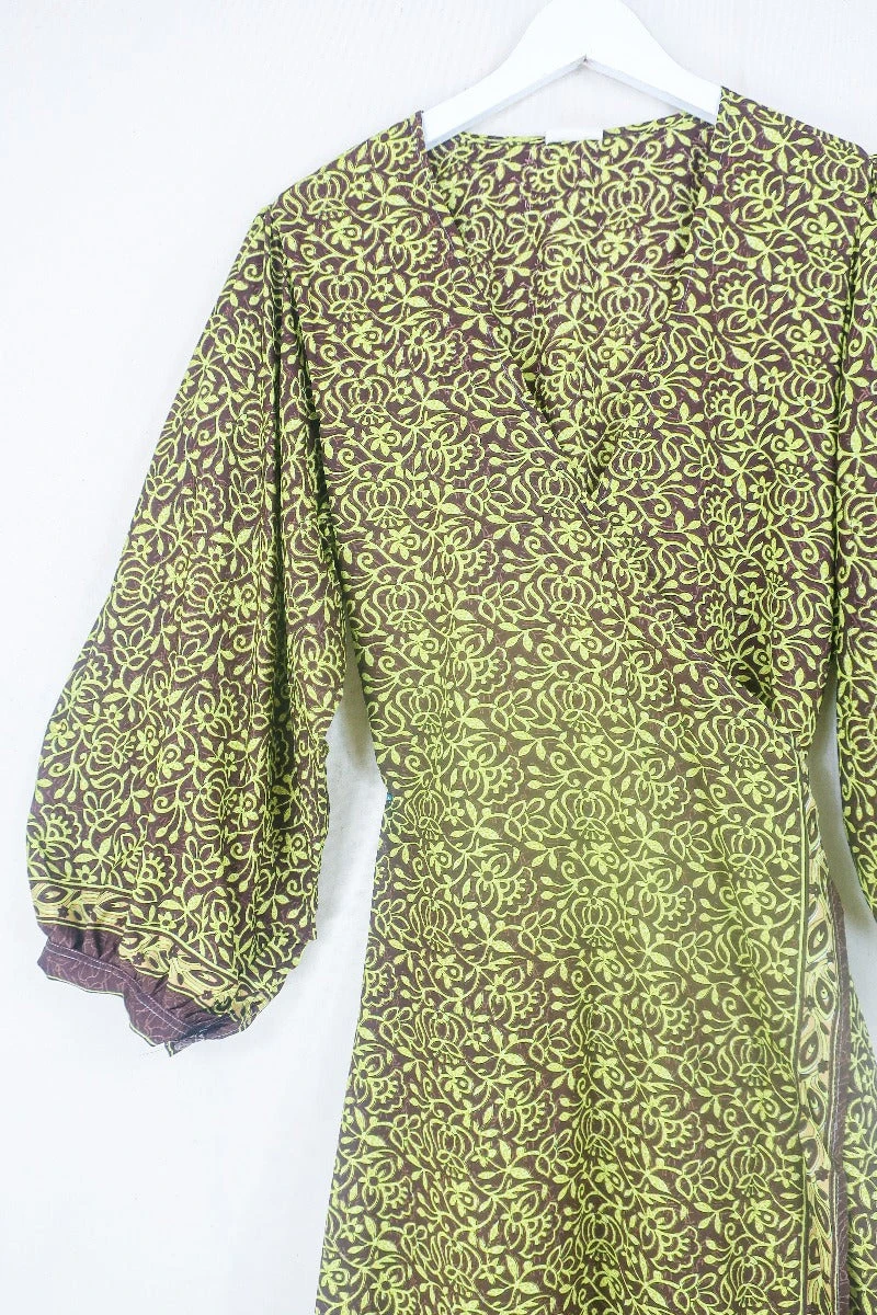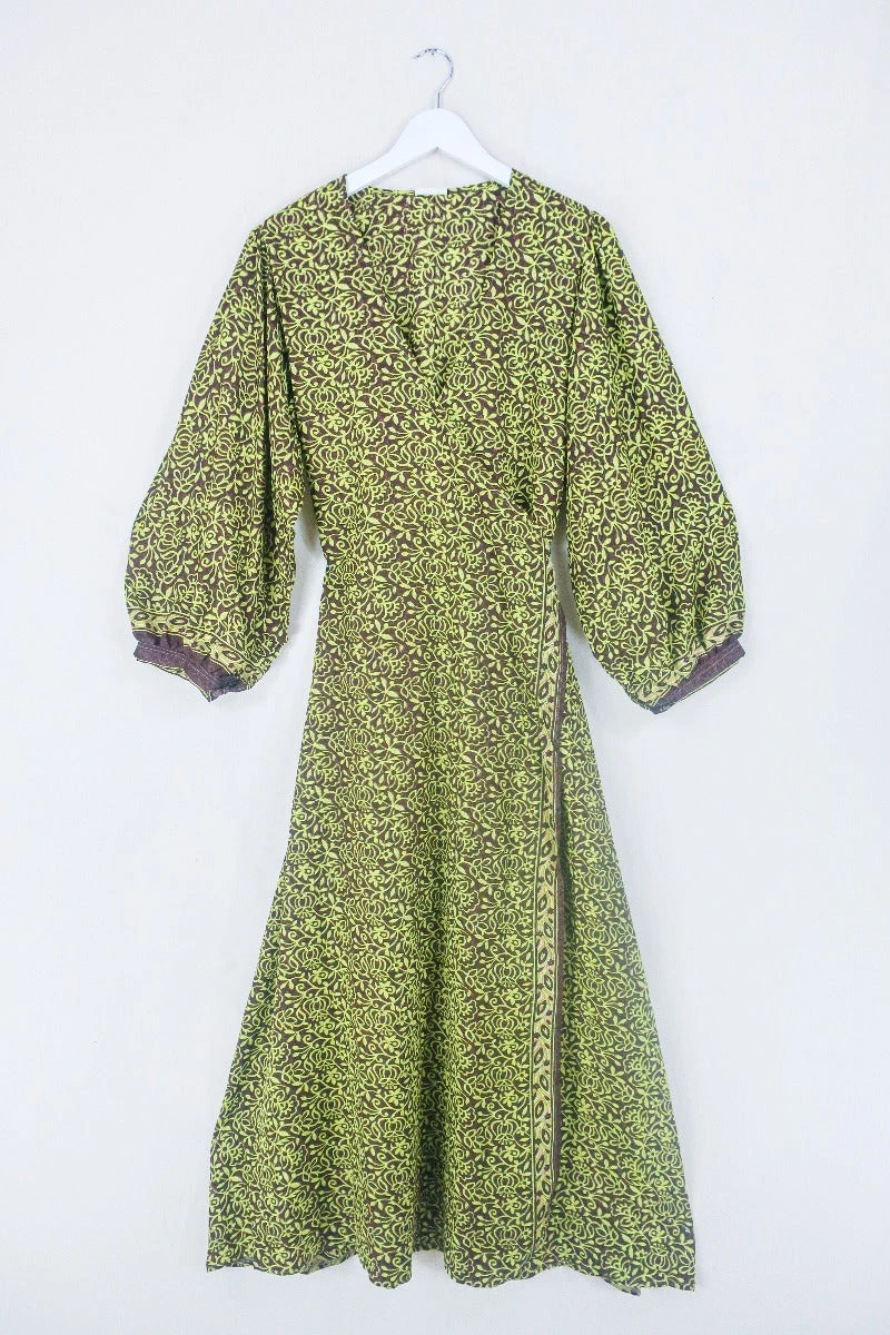 Our stunning & elegant Lola maxi wrap dress! Handmade from recycled vintage 70s Indian sari, this unique piece is your new boho obsession.