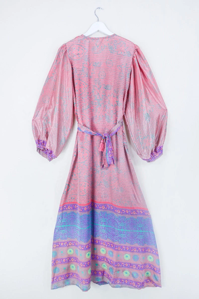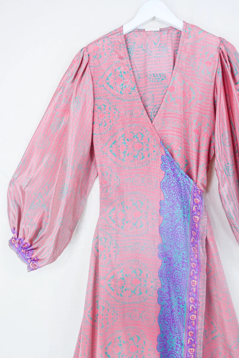 Our stunning & elegant Lola maxi wrap dress! Handmade from recycled vintage 70s Indian sari, this unique piece is your new boho obsession.