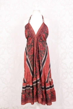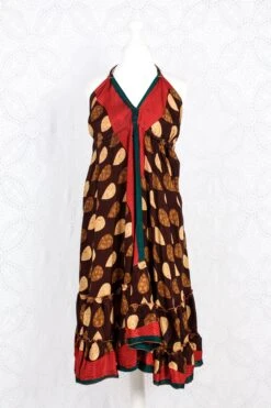 Blossom Mini Halter Dress – Vintage Indian Sari – Hazelwood & Coral Floral Paisley – XL
