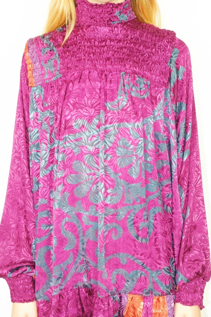 Mona Mini Dress – Vintage Indian Sari – Plum & Teal Shimmer – Free Size