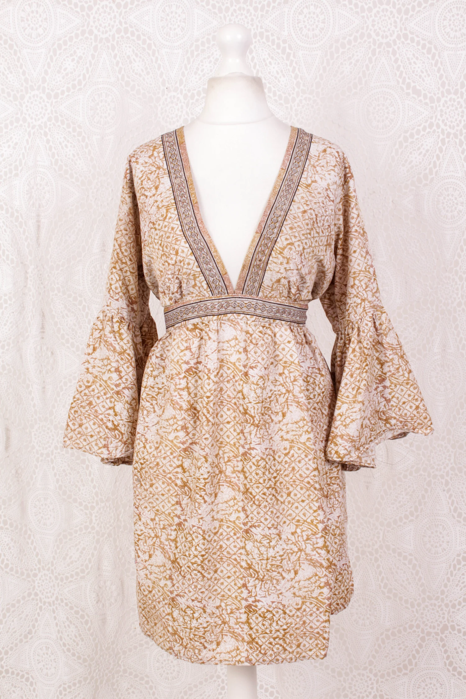 Size: Free Size M/L – will fit up to U.K. size 16 but can be worn by any smaller size, either left loose and flowing, or by belting at the waist