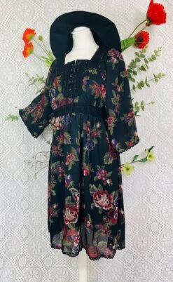 Pansy Mini Dress – Indian Sari – Circular Flounce Sleeve – Rose Taupe Tile Print – Free Size M/L