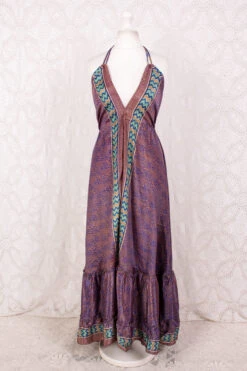 Blossom Halter-Neck Maxi Dress – Sapphire & Golden Amber Floral Paisley – Free Size XL