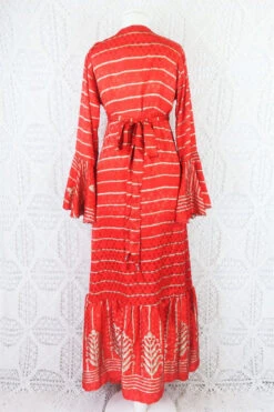 Pansy Mini Dress – Indian Sari – Circular Flounce Sleeve – Rose Taupe Tile Print – Free Size M/L