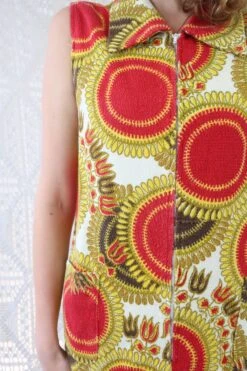 Vintage Mini Dress/Top – Bright Red & Yellow Mandala Sunflower – Size S