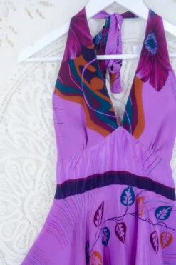 Rosemary Maxi Dress – Vintage Indian Sari – Emerald & Magenta Peacock Illustrations – XS/S