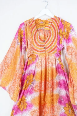 Lunar Mini Dress – Vintage Sari – Sunset Pink & Lavender Floral Paisley – Size XXS Petite