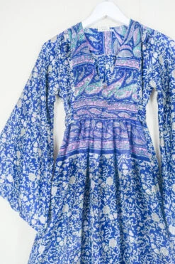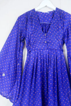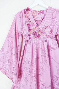 Lunar Mini Dress – Vintage Sari – Royal Paisley And French Pink Garden – Size XXS Petite