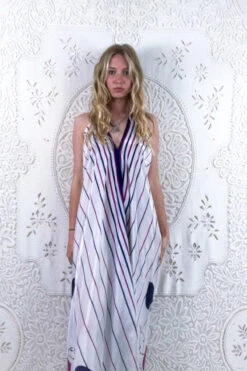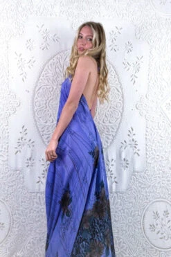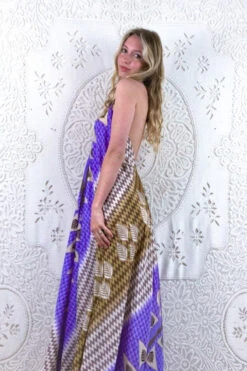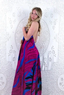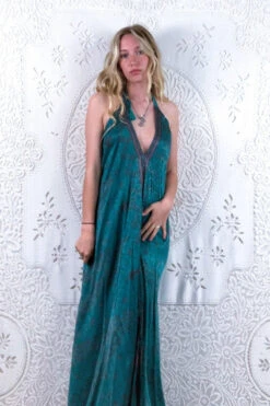 Athena Maxi Dress – Vintage Sari – Juniper Green, Chartreuse & Pink Floral – S/M – XXL