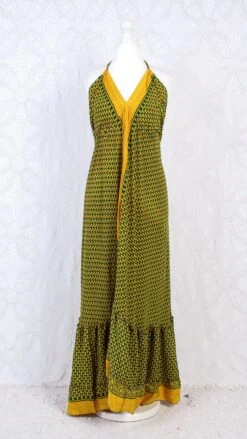 Blossom Halter-Neck Maxi Dress – Sapphire & Golden Amber Floral Paisley – Free Size XL