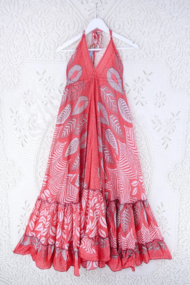 Stunning floaty halter-neck maxi dress with a tiered frill skirt.