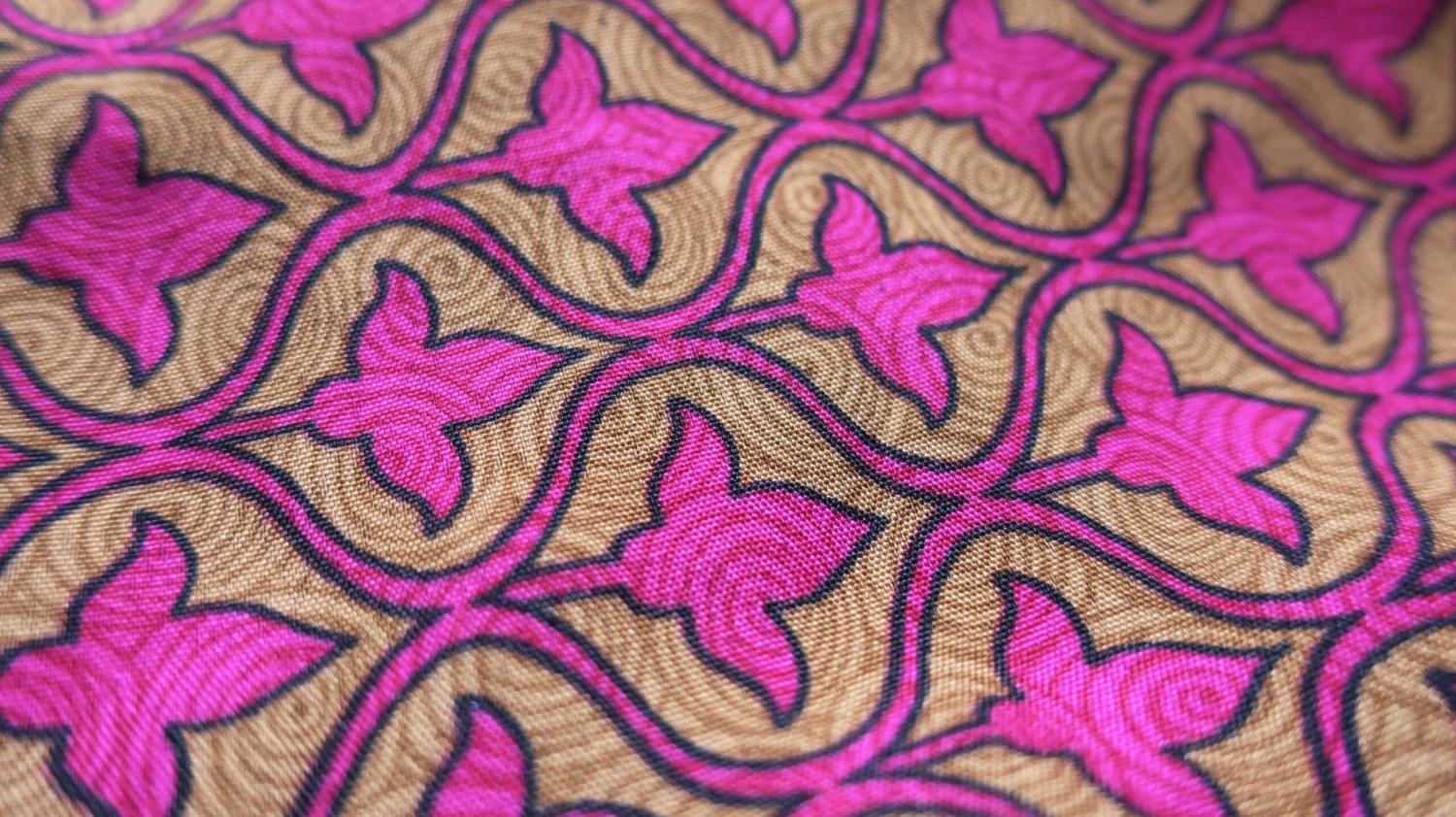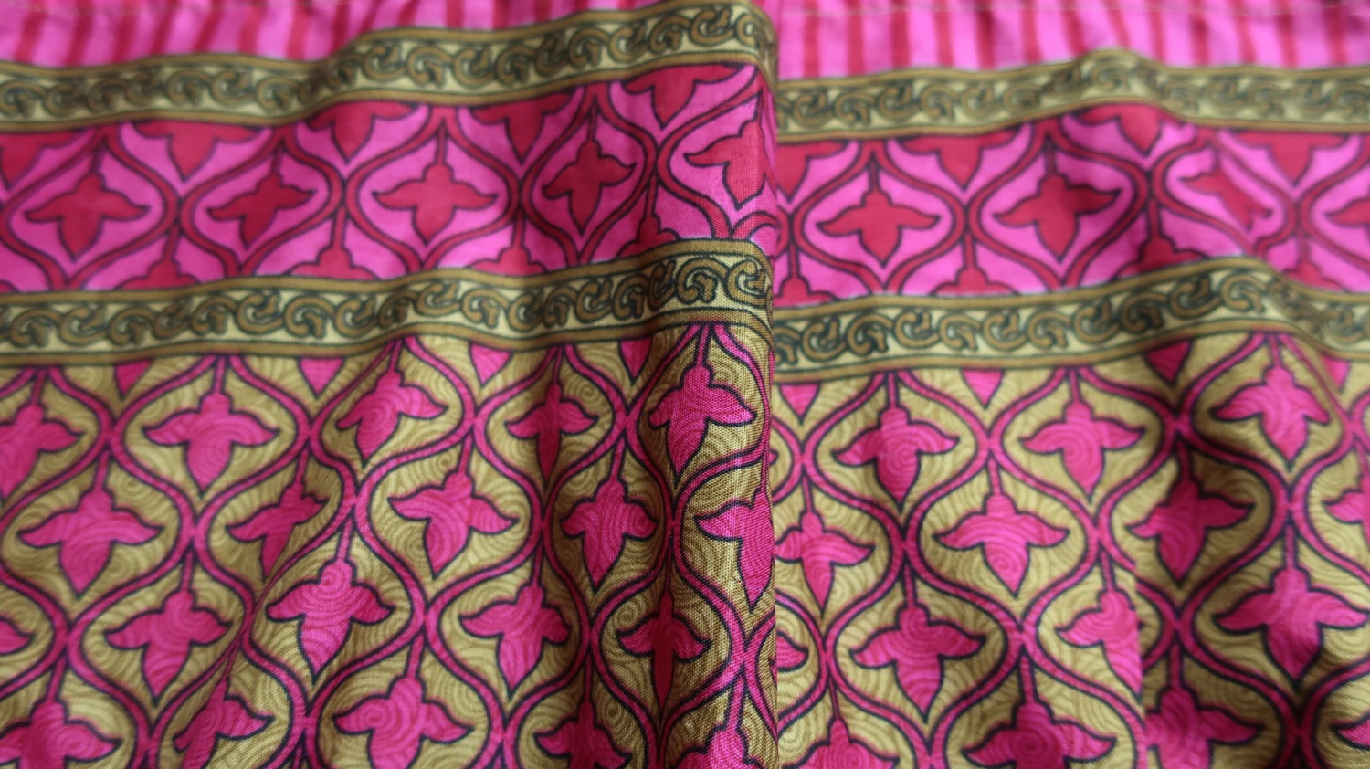 Fabric – Vintage Indian Sari – unknown Exact content blend – feels like viscose blend.