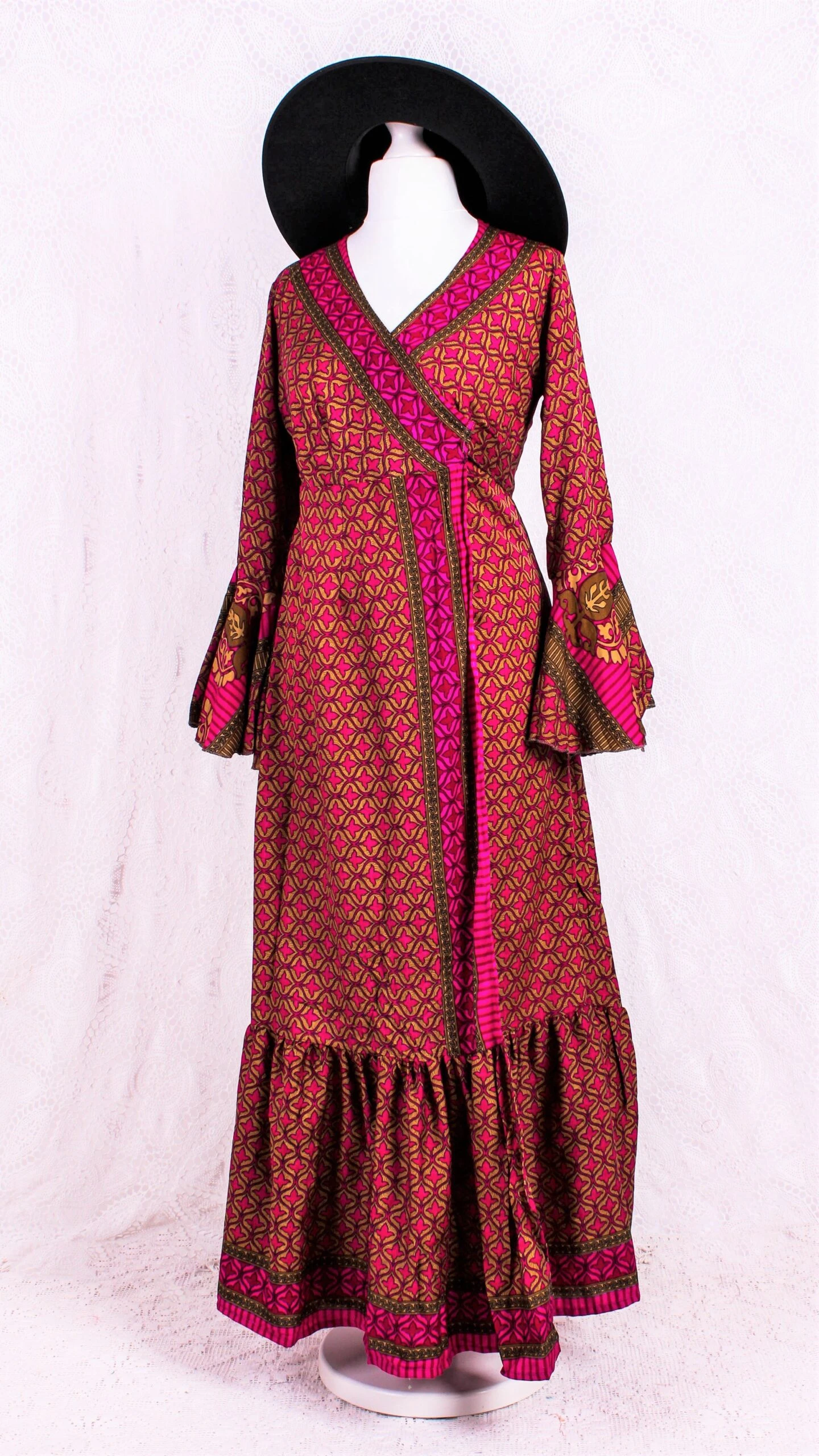 Stunning new style the Sylvia wrap dress – Made from Recycled Vintage Indian Sari fabric so each one is completely unique!