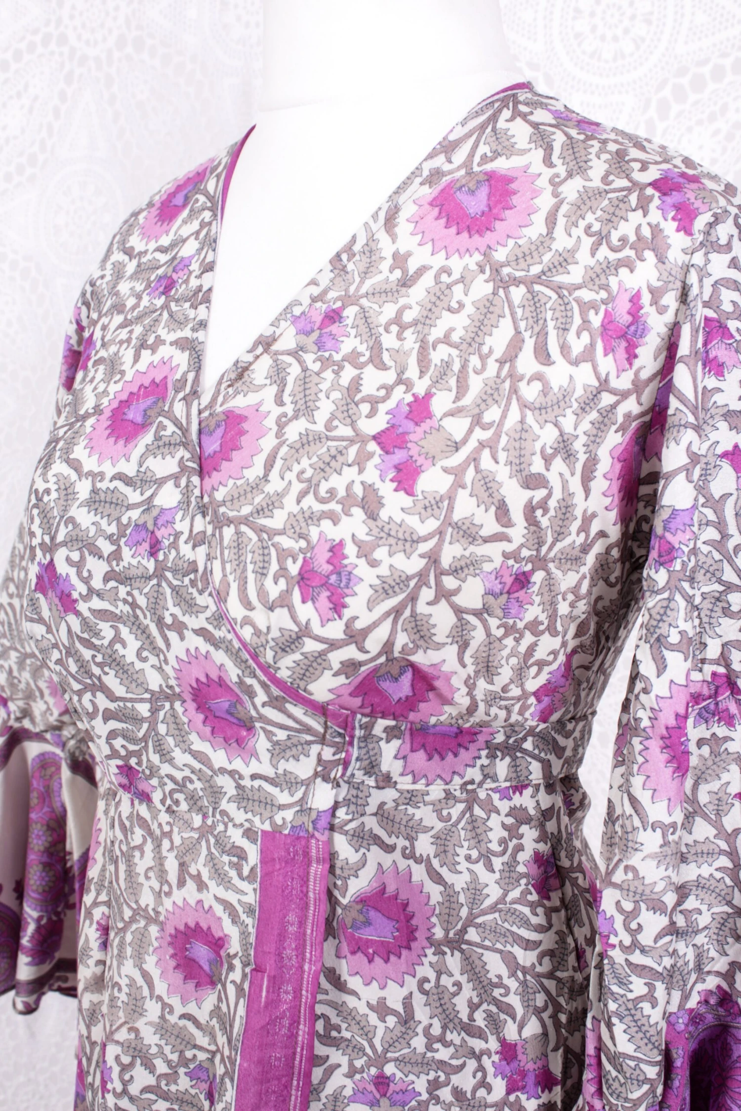 Stunning new style the Sylvia wrap dress – Made from Recycled Vintage Indian Sari fabric so each one is completely unique!