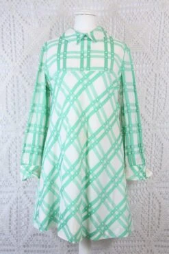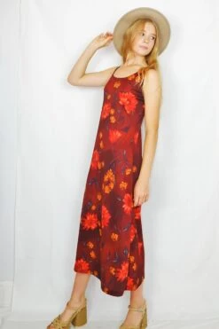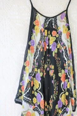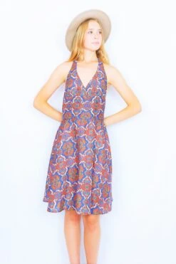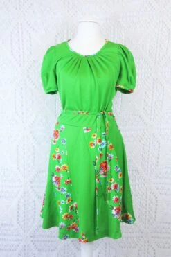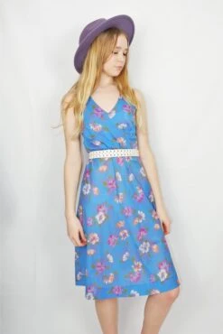 70’s Vintage – Halter-Neck Midi Dress – Blue, Green, Orange & Yellow Floral Stripe – Size XXS