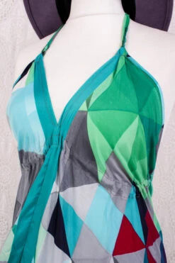 Blossom Midi Halter Dress – Vintage Indian Sari – Burgundy, Seafoam & Plum Motif – Free Size