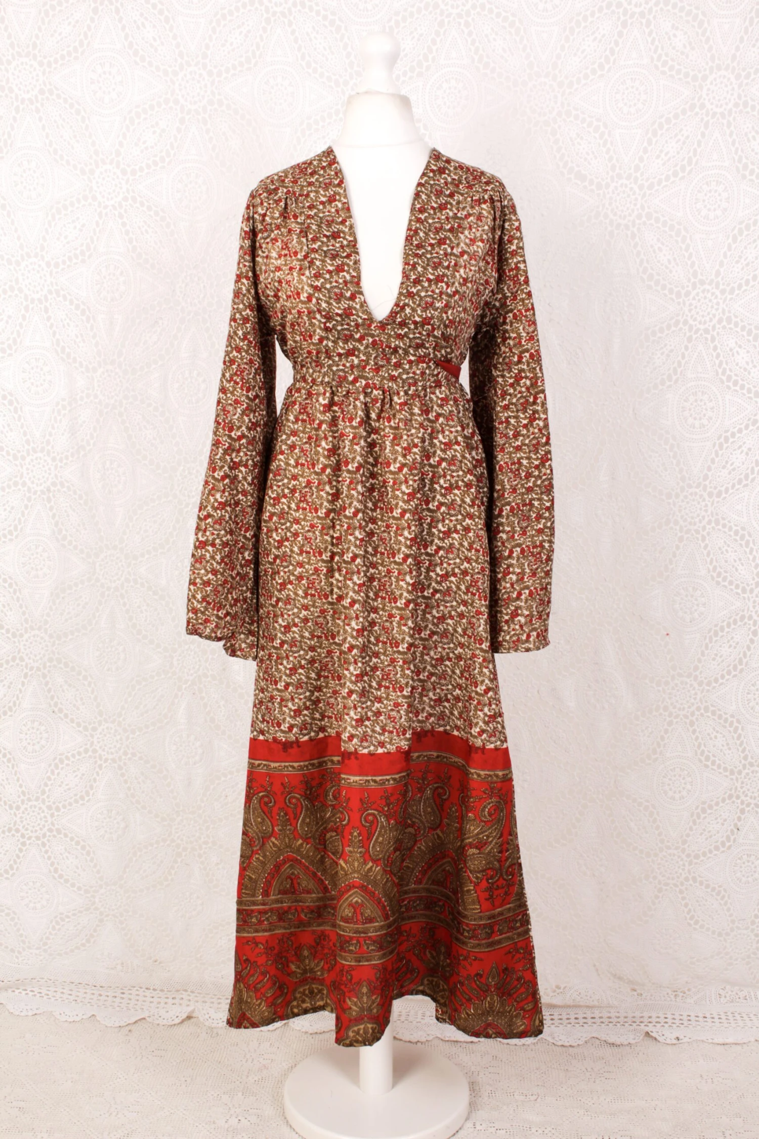 Stunning maxi dress, reworked from Vintage Indian Sari – Each one is totally unique!