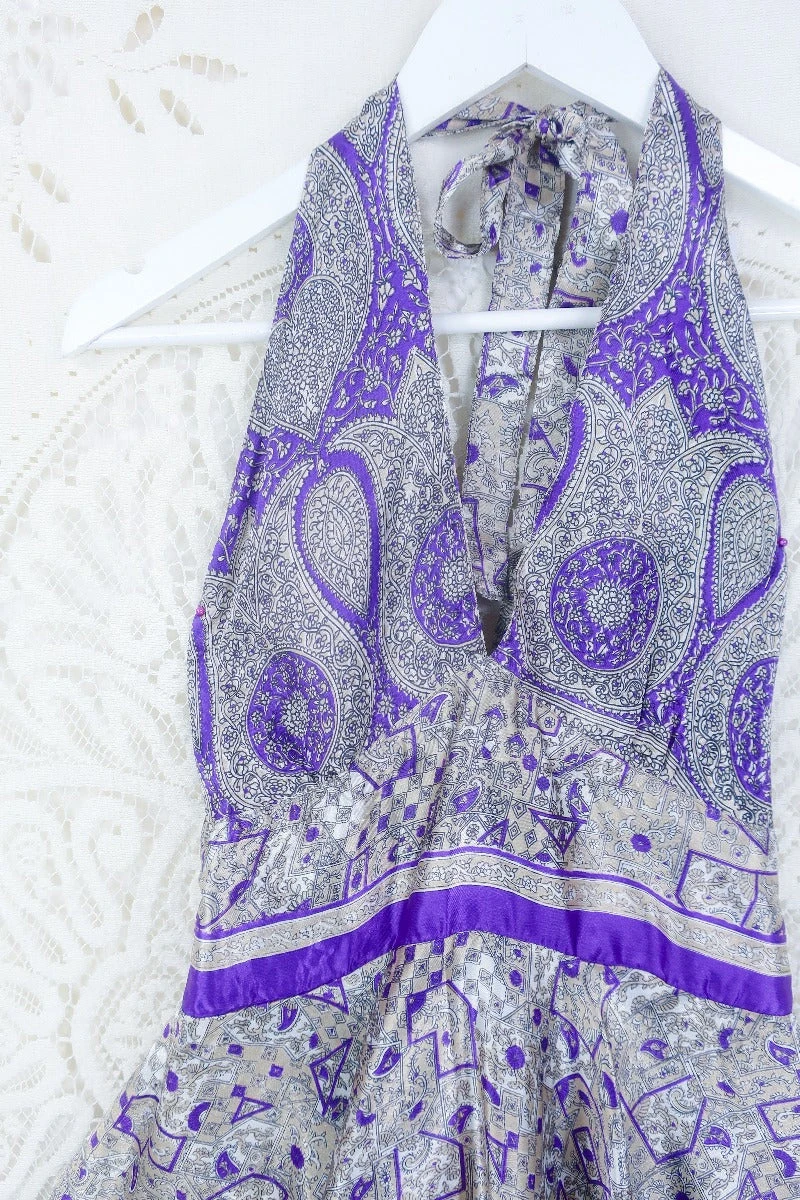 Stunning 70s boho inspired mini dress, made from vintage recycled Indian fabrics so each one is truly unique! Super soft silky sari material with a gorgeous colour and print.