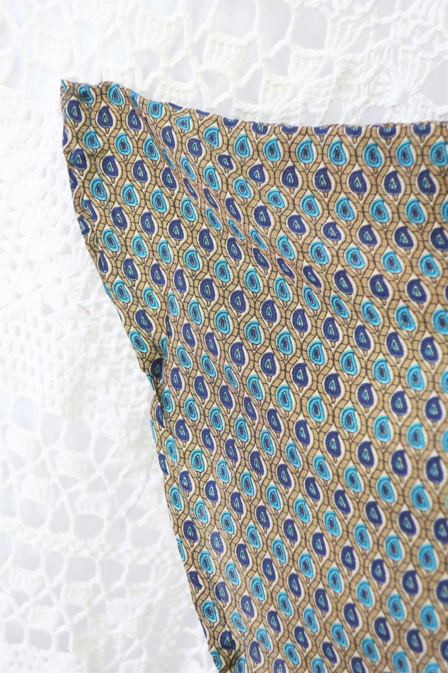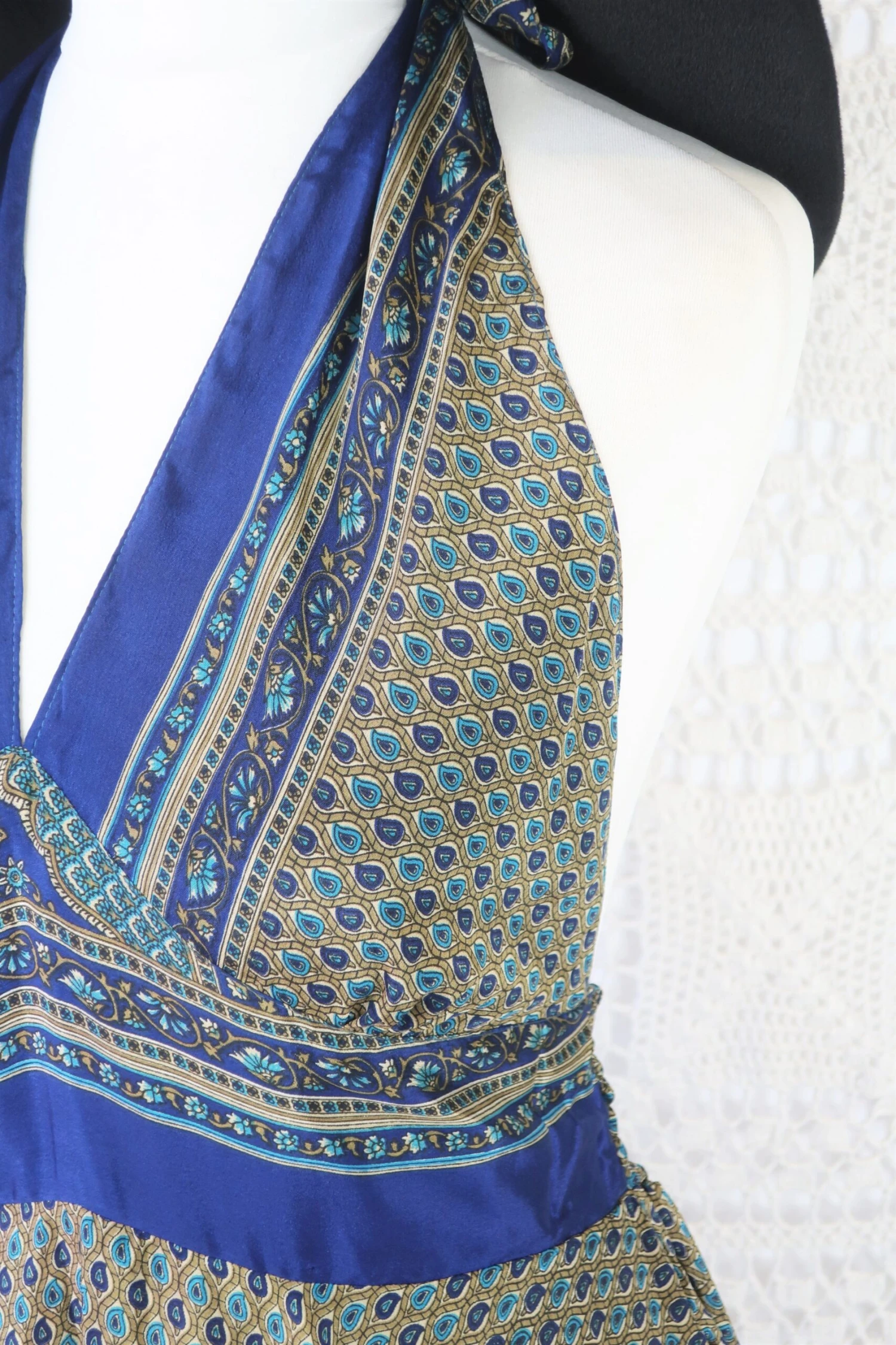 Stunning 70s boho inspired mini dress, made from vintage recycled Indian fabrics so each one is truly unique! Super soft silky sari material with a gorgeous colour and print.