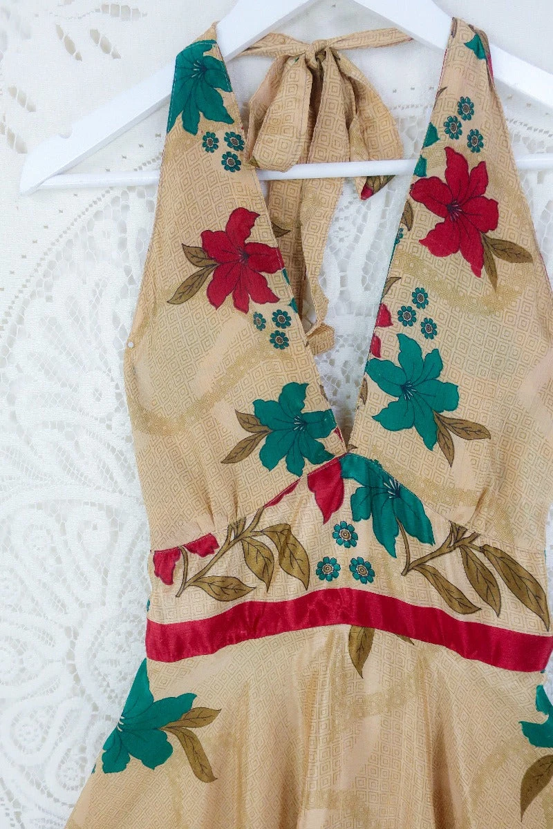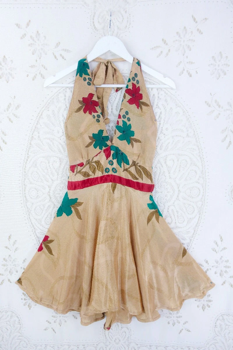 Stunning 70s boho inspired mini dress, made from vintage recycled Indian fabrics so each one is truly unique! Super soft silky sari material with a gorgeous colour and print.