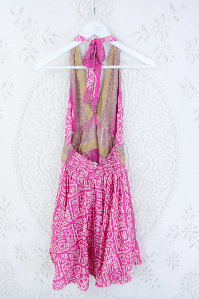 Stunning 70s boho inspired mini dress, made from vintage recycled Indian fabrics so each one is truly unique! Super soft silky sari material with a gorgeous colour and print.
