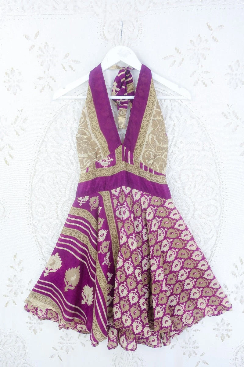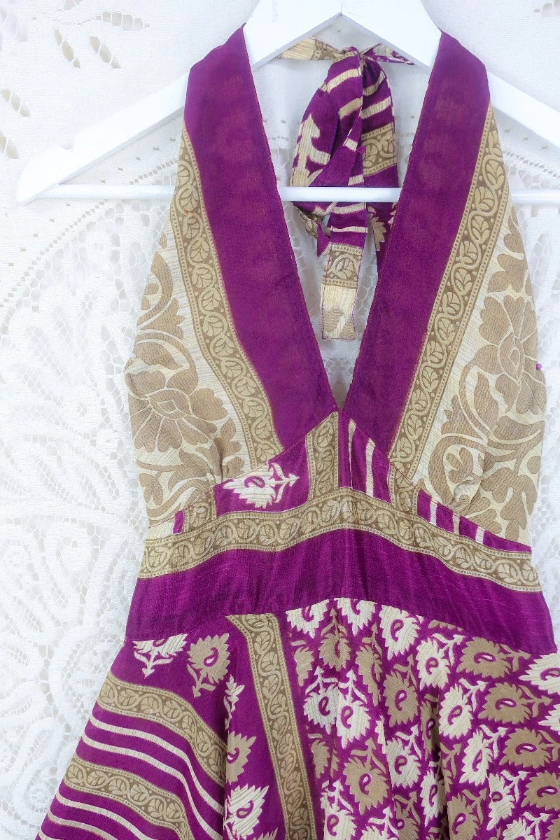 Stunning 70s boho inspired mini dress, made from vintage recycled Indian fabrics so each one is truly unique! Super soft silky sari material with a gorgeous colour and print.