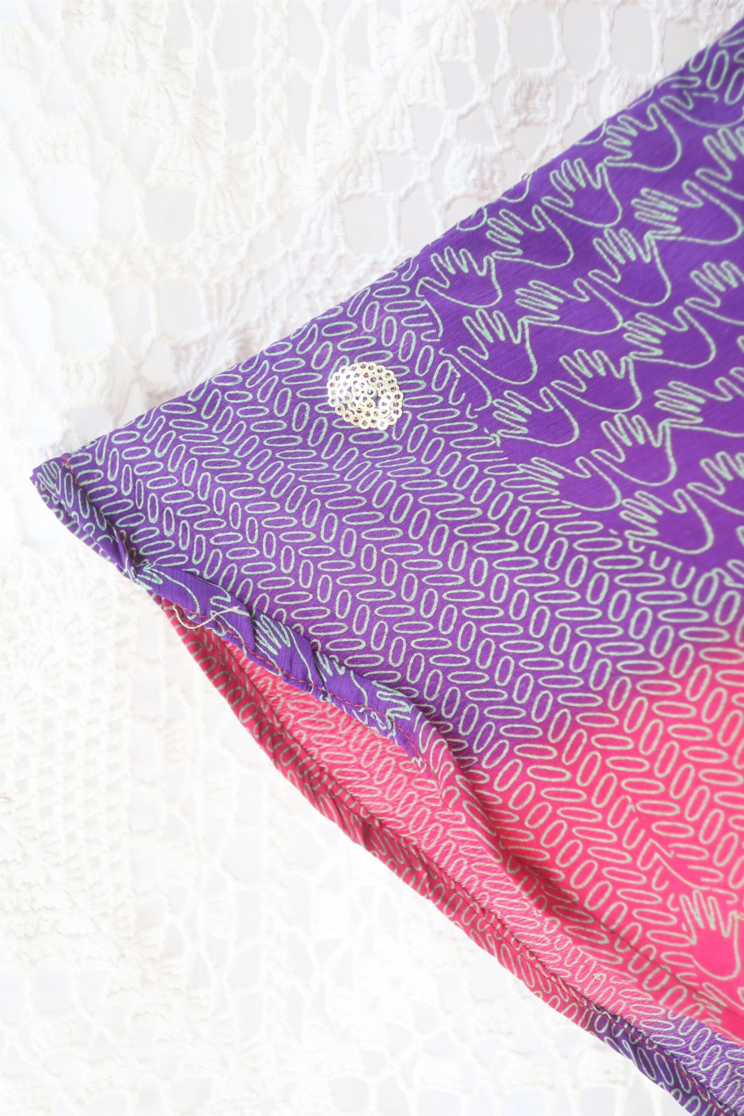 Fabric – Vintage Indian Sari –Â Unknown Exact Content Blend. Beautiful embroidery and sequin details – mainly on the back! see pics
