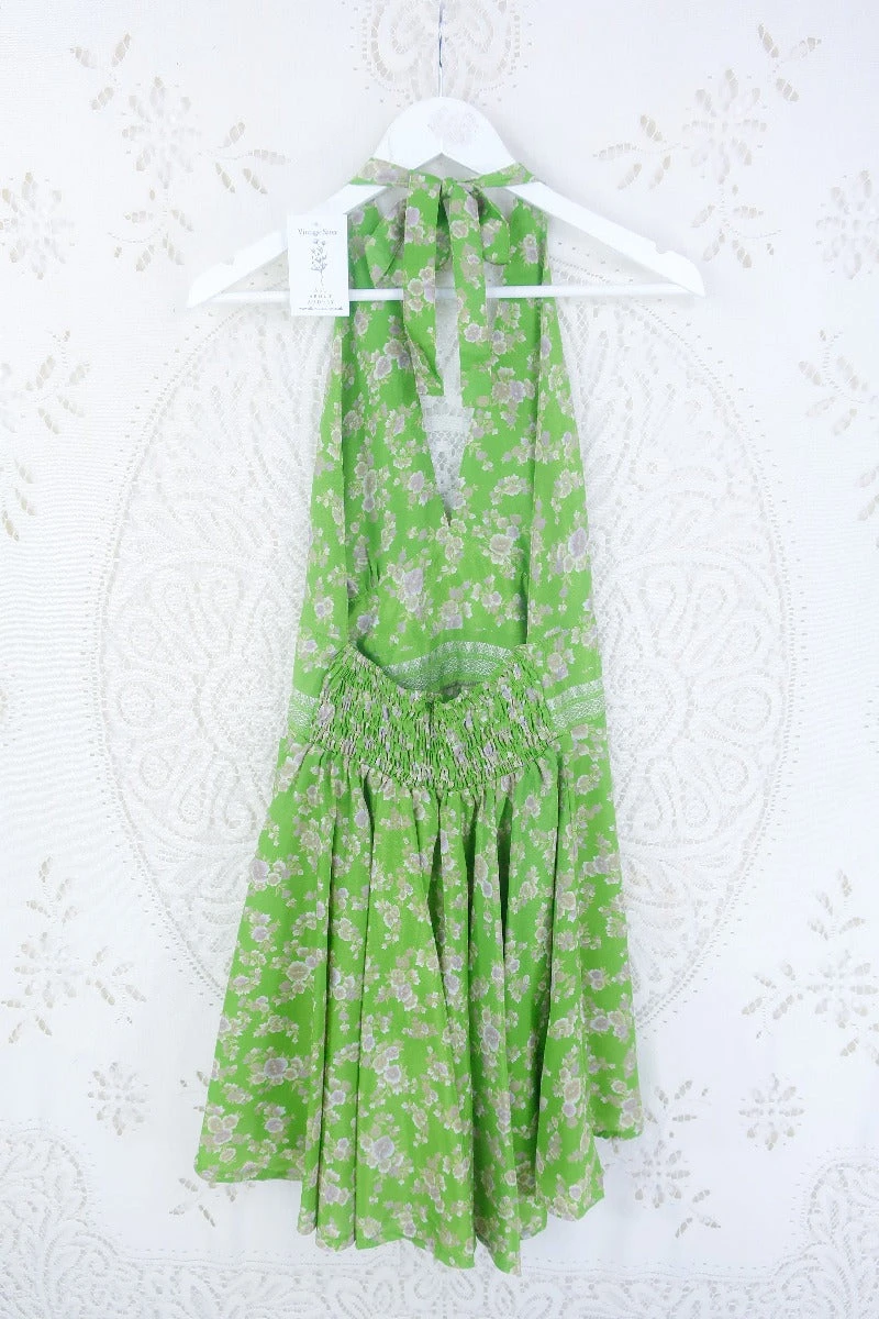 Stunning 70s boho inspired mini dress, made from vintage recycled Indian fabrics so each one is truly unique! Super soft silky sari material with a gorgeous colour and print.