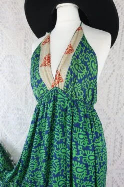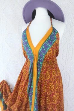 Stunning 70s boho inspired mini dress, made from vintage recycled Indian fabrics so each one is truly unique! Super soft silky sari material with a gorgeous colour and print.