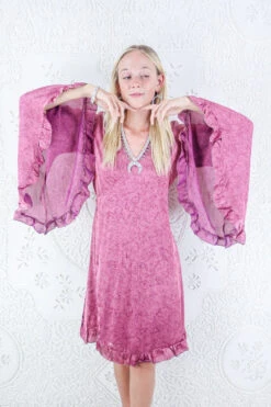 Sylvia Wrap Dress – Parakeet And Royal Blue Flora – Vintage Sari – Size L/XL