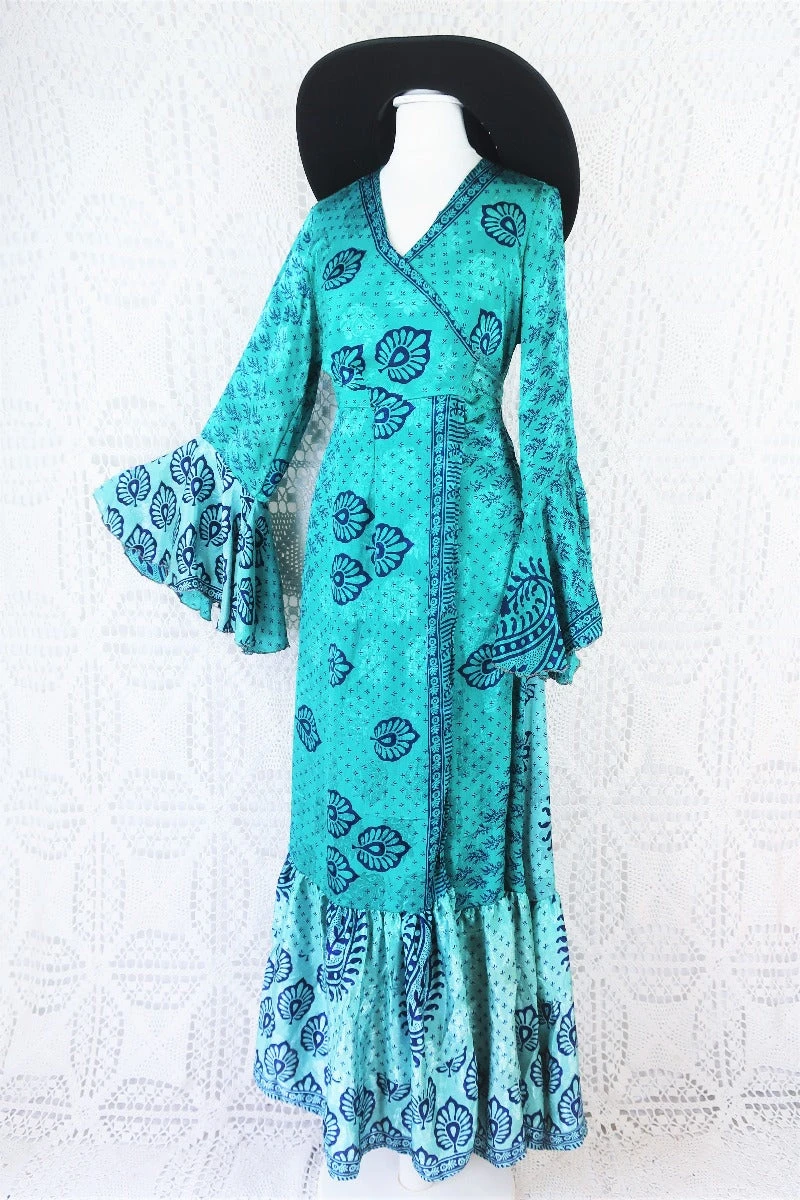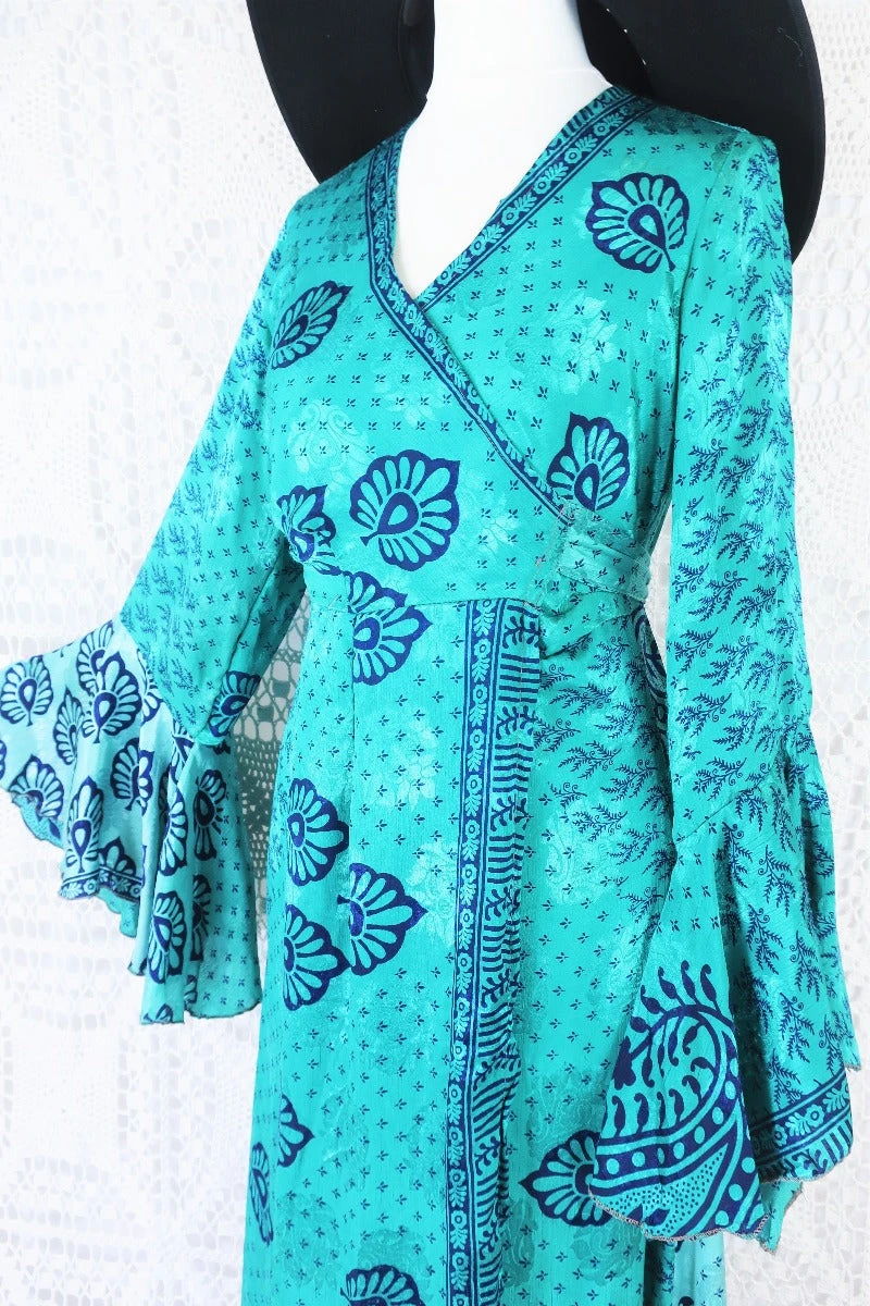 Stunning new style the Sylvia wrap dress – Made from Recycled Vintage Indian Sari fabric so each one is completely unique!