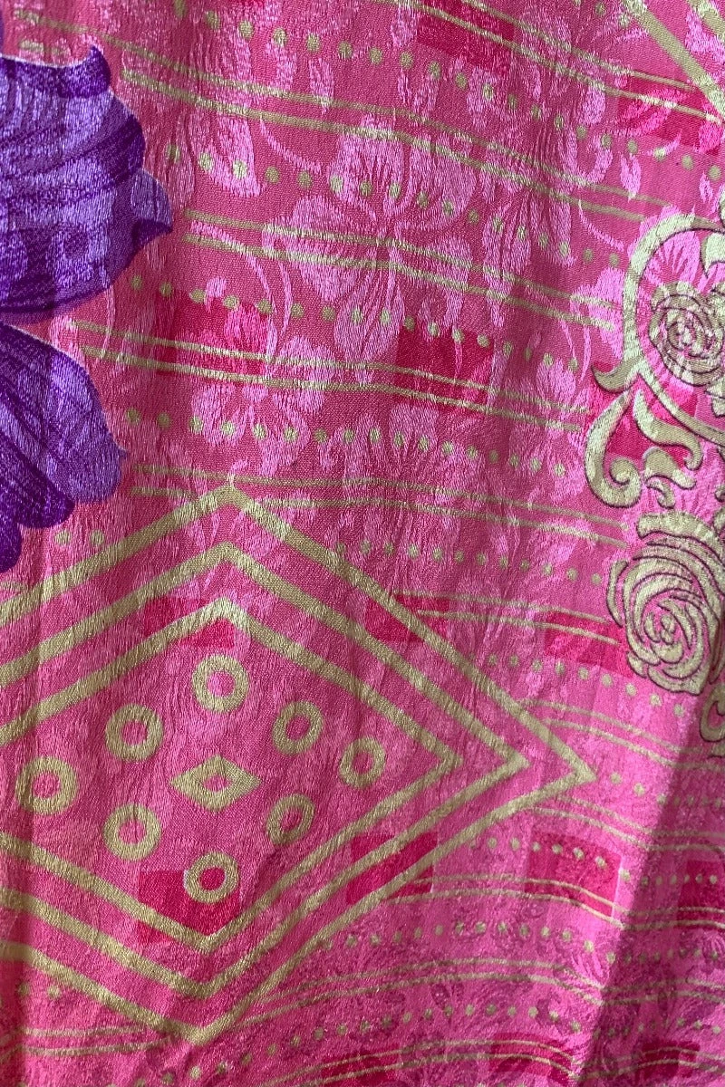 Handmade from Recycled Vintage Indian Sari – Exact Content Blend Unknown, feels silky and soft. Slightly sheer.