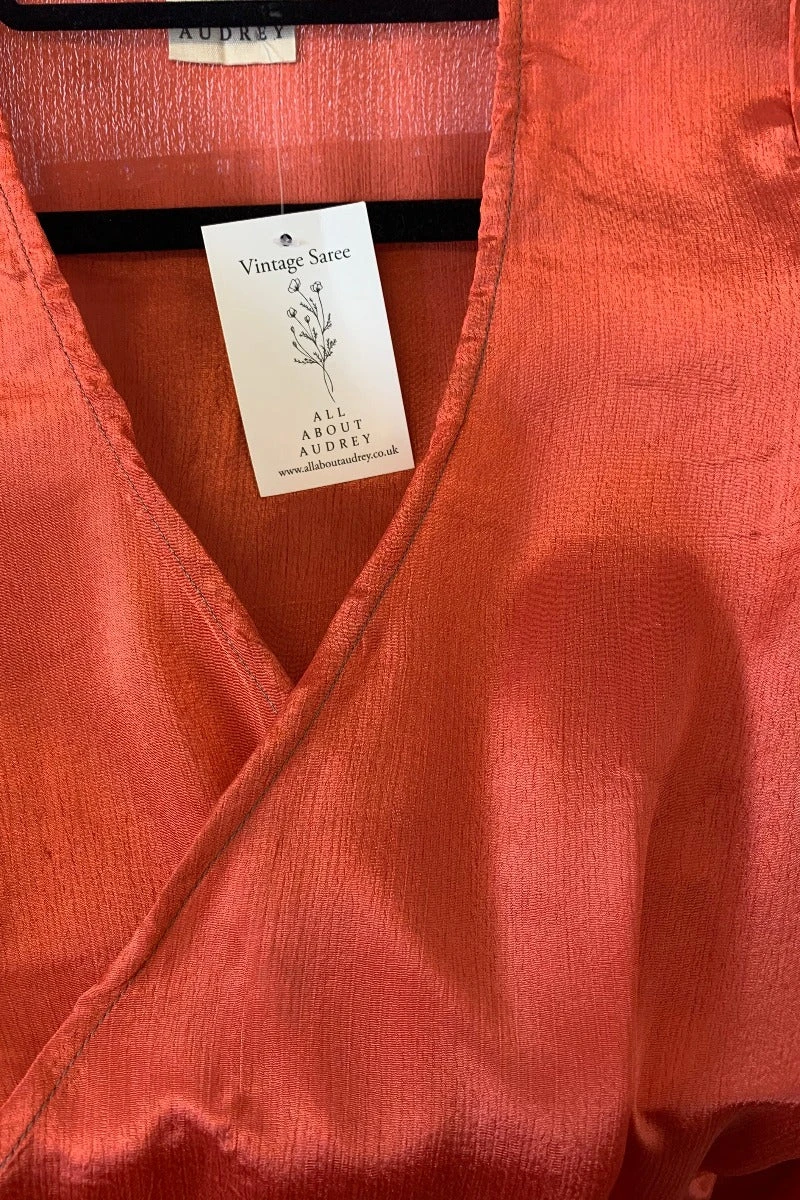 Handmade from Recycled Vintage Indian Sari – Exact Content Blend Unknown, feels silky and soft, slightly sheer.