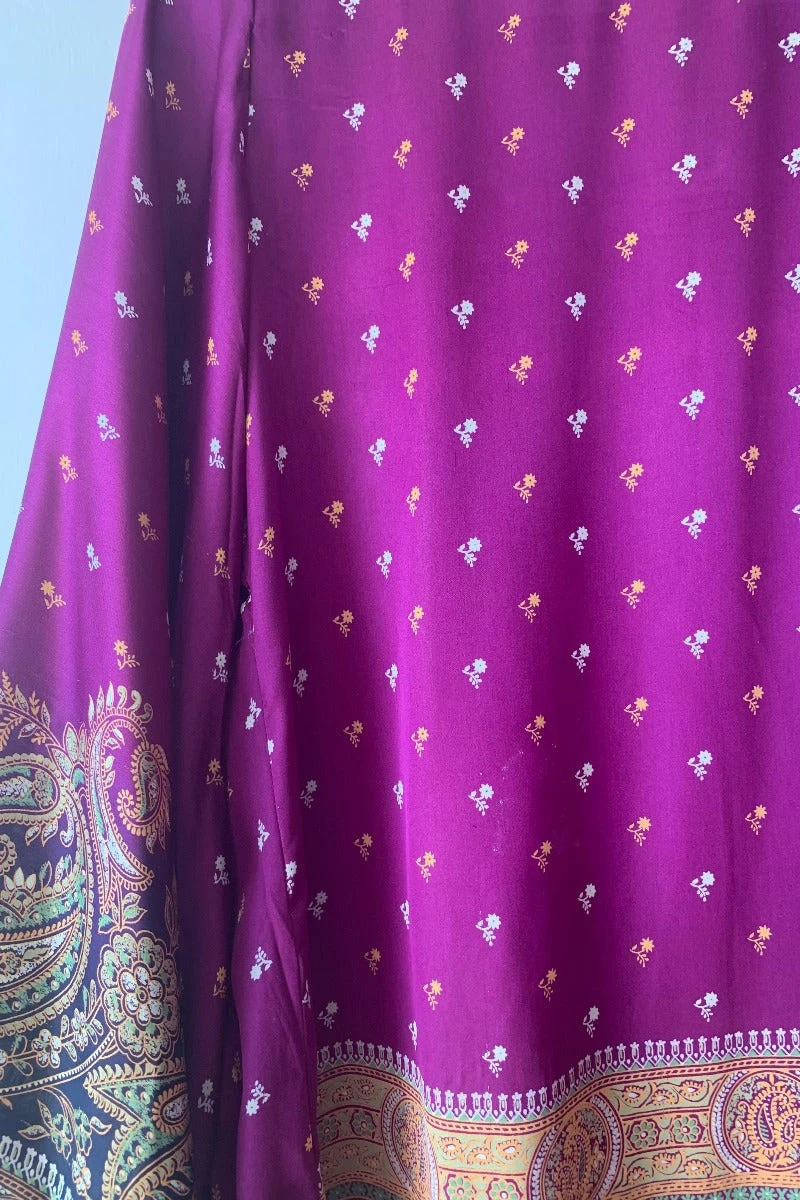 Handmade from Recycled Vintage Indian Sari – Exact Content Blend Unknown, feels silky and soft. Slightly sheer.